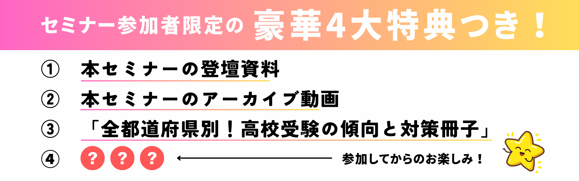 ※中学1年生・中学2年生のお子様をもつ保護者の方にとっても有意義な情報かと思いますので、是非ご参加ください!