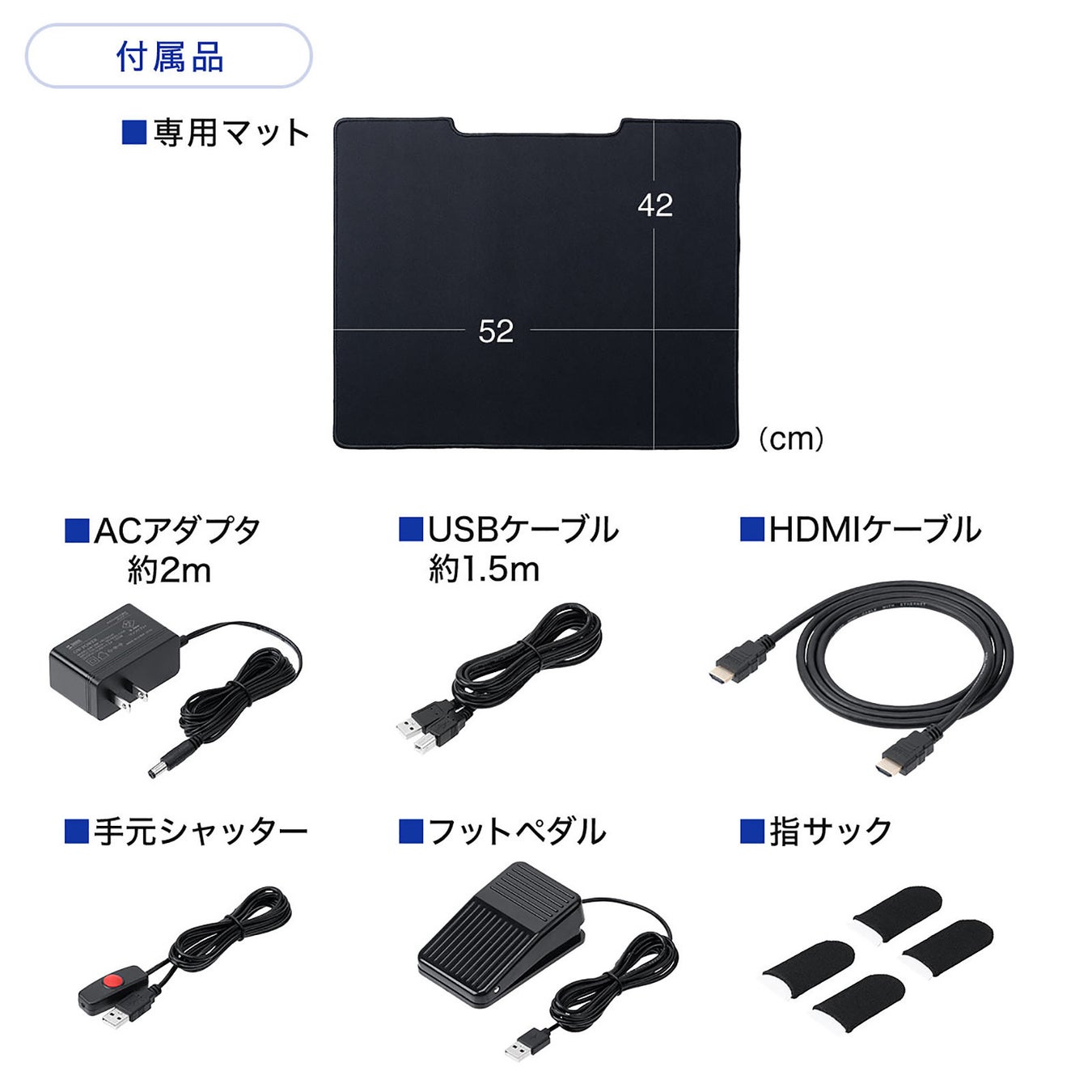 本体には操作パネルを搭載し、静止画・動画の切替や拡大縮小も直感的に操作可能です。さらに手元シャッターやフットペダルが付属しており、本を押さえながらでも両手を使わずに撮影できるのが魅力。ユーザーの使いやすさに徹底的にこだわった設計です。