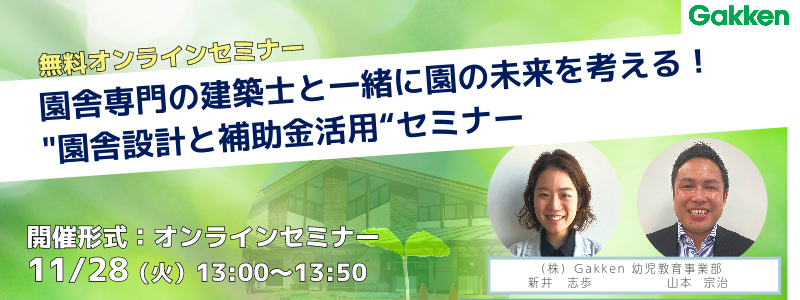 <Gakken無料セミナー>園舎専門の建築士と一緒に園の未来を考える!"園舎設計と補助金活用“セミナー