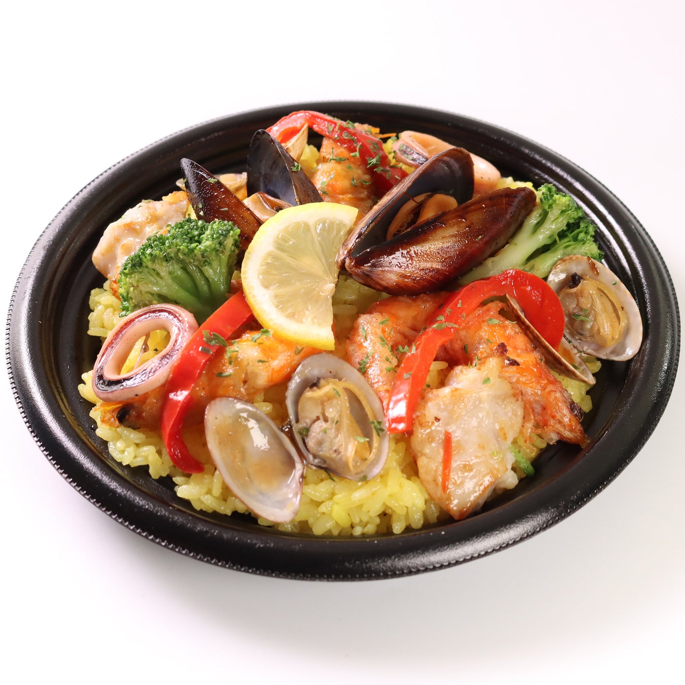サフラン香る「パエリア」は、芳醇なサフランの香りと、えび・いか・ムール貝・あさりなど4種の魚介の旨みがたっぷり詰まった本格派の一品です。ふっくら炊き上げた米と魚介の旨みで、口 に入れた瞬間、豊かな風味が広がります。