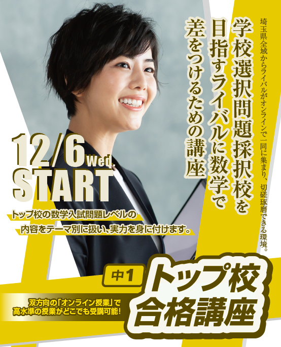 中1生対象に学校選択問題レベルに対応した数学の授業を実施。埼玉県内からライバルがオンラインで集い、切磋琢磨する環境を創出します!