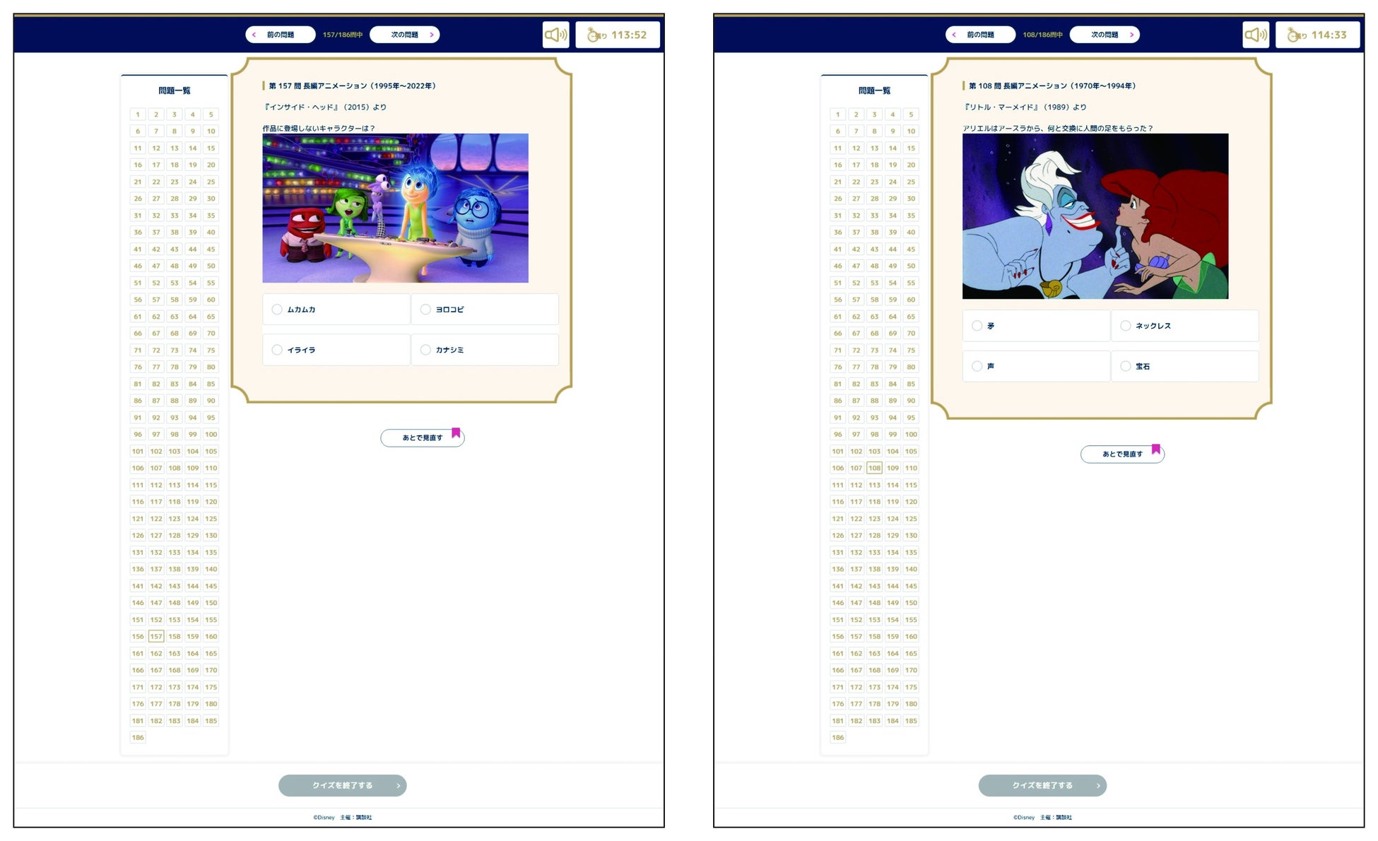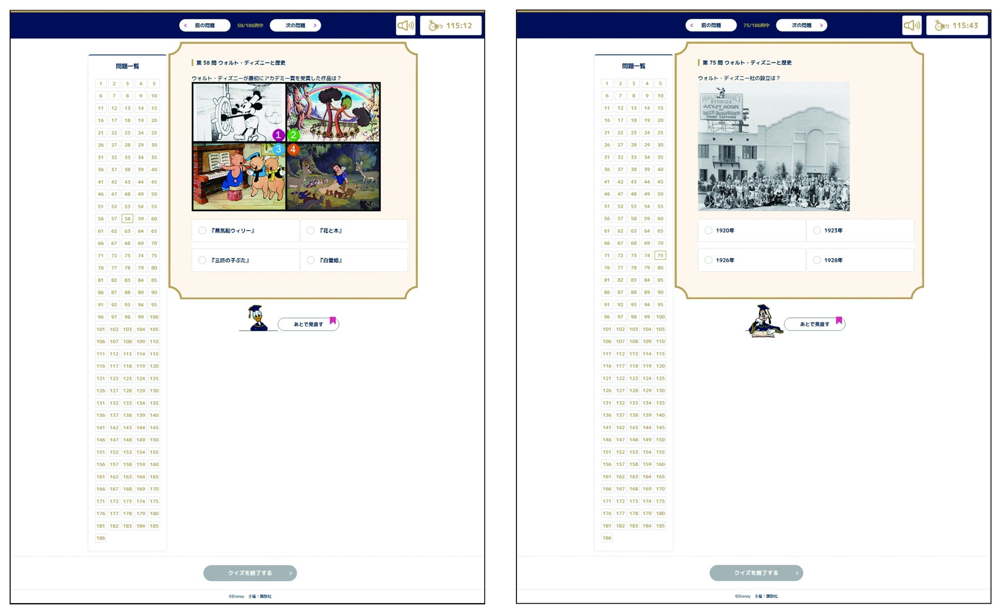 クイズ問題は全100問。ディズニーファンなら挑戦する価値が大いにあるトリビアな問題ばかりです。また、80分間で解いていくので、達成感も味わえます。
