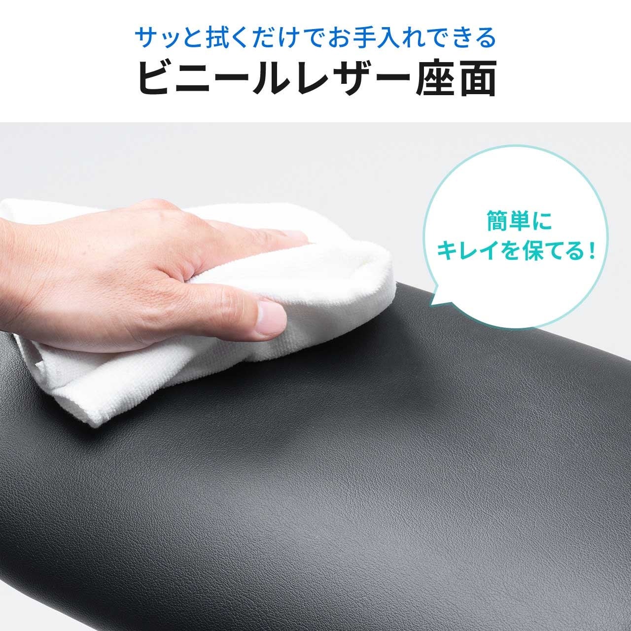 【メンテナンスが楽】さっと拭くだけでお手入れが出来るビニールレザーの座面です。