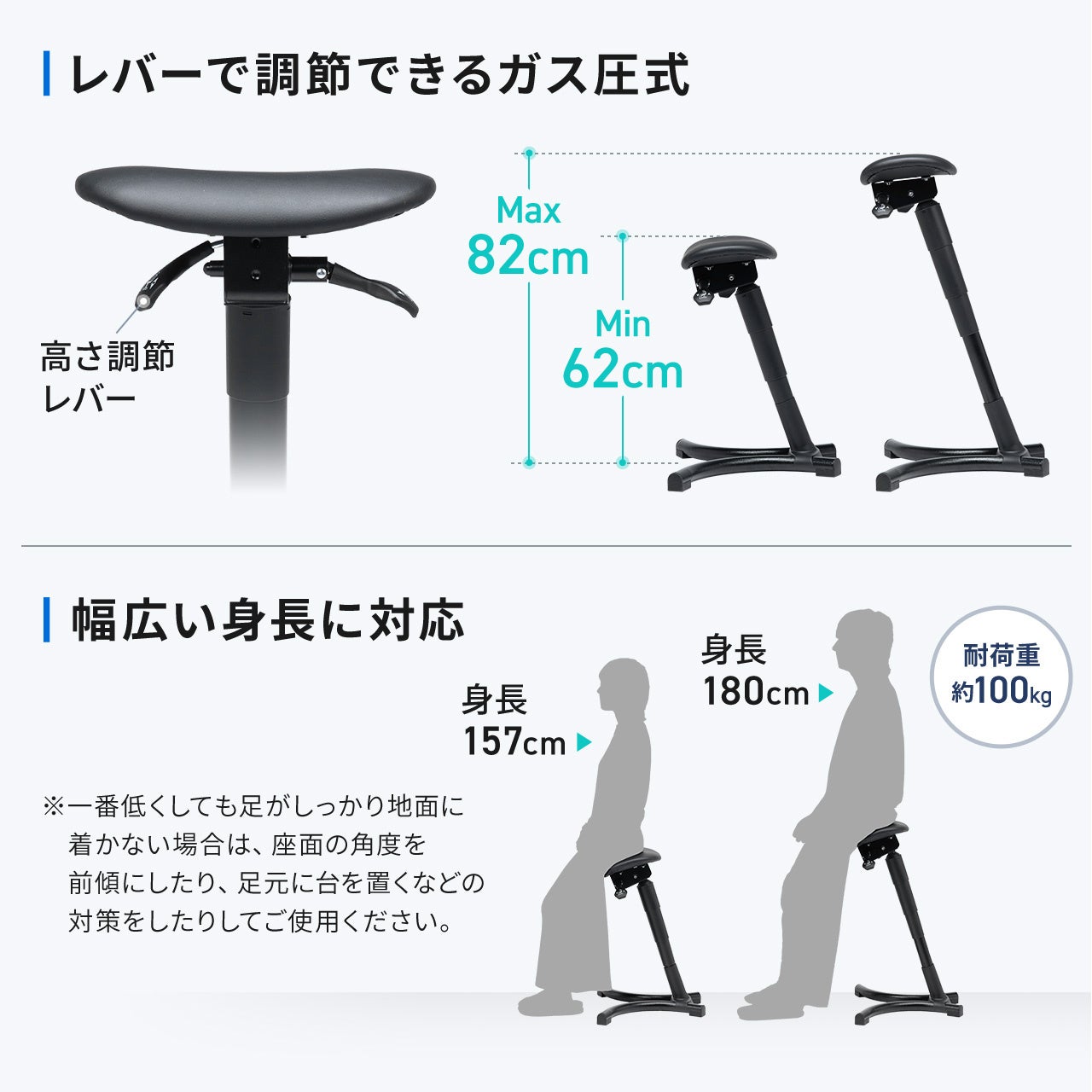 【高さ調節可能】ガス圧で高さ調節可能なので幅広い身長の方に使用していただけます。