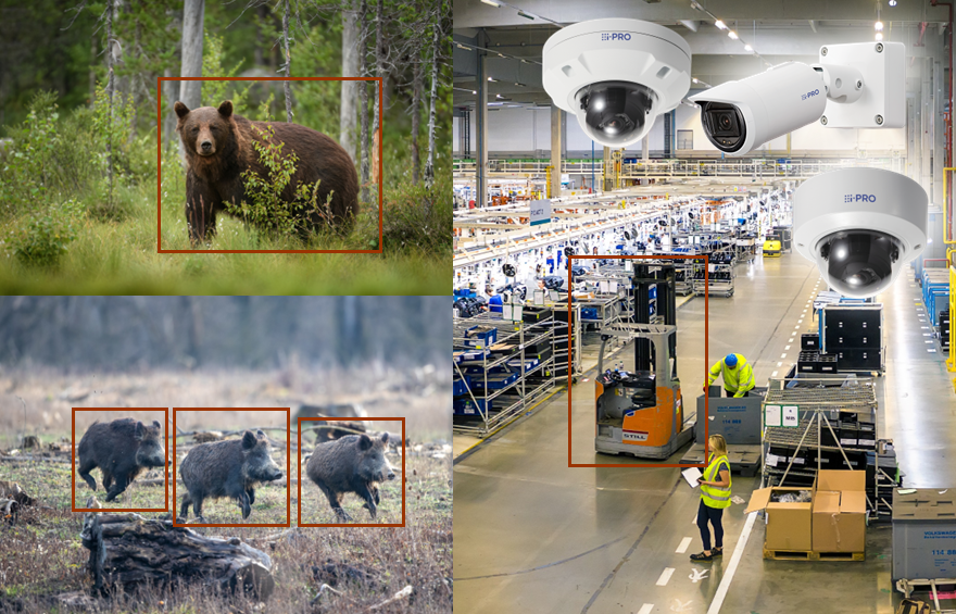 新開発のAI現場学習アプリケーションでは、お客様の現場で追加学習を行うことで、検知対象の追加や検知精度の改善などのAI動体検知アプリケーション(WV-XAE200WUX)の性能向上が可能です。これにより、従来と比べて信頼性の高い解析データの取得や誤報・失報を抑えることが可能となり、野生動物による被害や工場内での接触事故の未然防止、無駄な現場巡回業務の削減などを実現します。