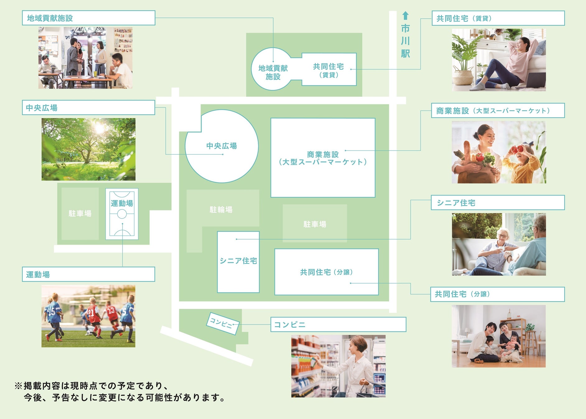 新たな街づくりの中で当社は、商業施設の展開を通じて「リーフシティ市川」のコンセプトの一つである「幅広い世代がいきいきと暮らせる街づくり」の実現を目指します。