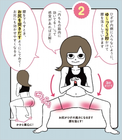 細くて女性らしい美脚を手に入れるには、腰を落とした時に「太ももの内側」に効かせるスクワットをすることが大切です。ポイントは脚を大きく開いたワイドスクワット! 内転筋に効かせるには、腰を落とす時に、「ひざが内側に入らない」ようにすること、そして「かかと重心」にすること。