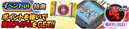 アニメ『咲-Saki-全国編』のアガリ演出やEX背景のほか、卓背景アイテムがイベントpt特典や決勝進出特典として獲得できます。
