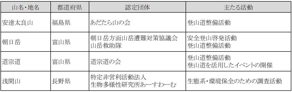 各認定団体には、本年度中に助成金を拠出するとともに、山と溪谷社の媒体を活用した広報支援を行う予定です。