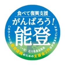 能登復興を支援する企業が、石川県食品協会より「食べて復興支援 がんばろう!能登」シールを1枚3円で購入し、商品に貼付※4をして販売します。原材料費(紙代及び印刷費等)を除いた1枚あたり2円が、石川県食品協会を通じて能登の食品関連企業の支援や能登の食文化を守り育てるための取り組みに活用されます。