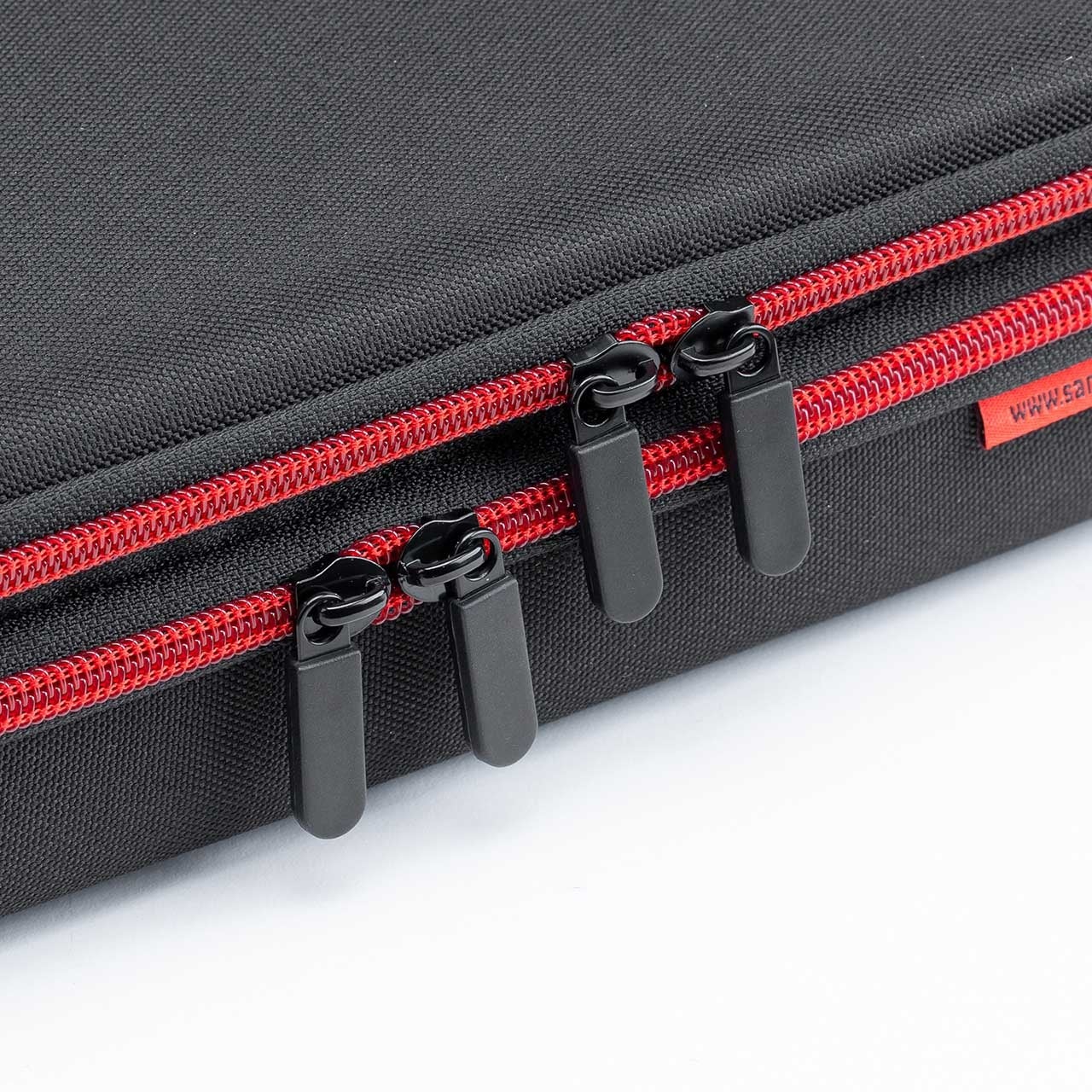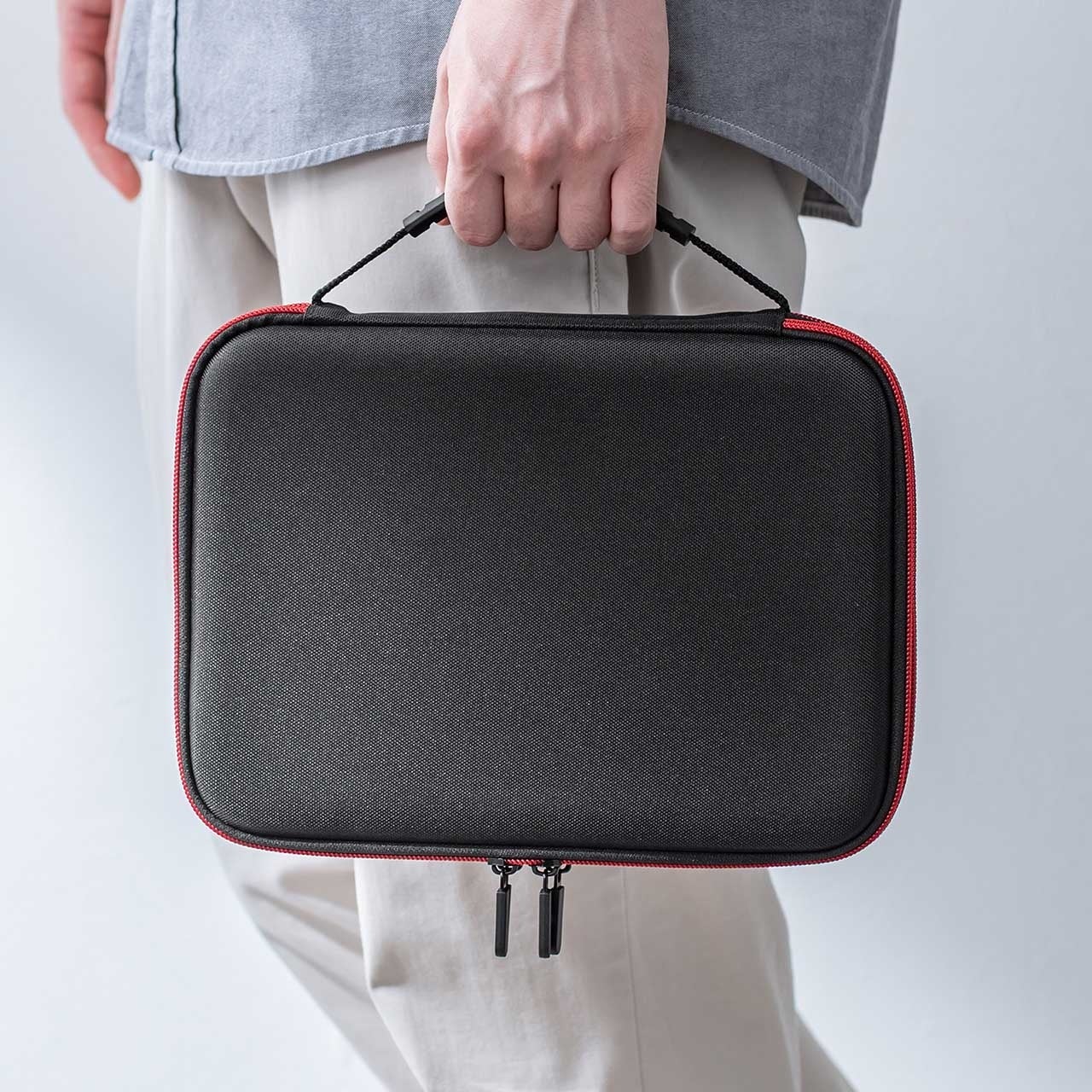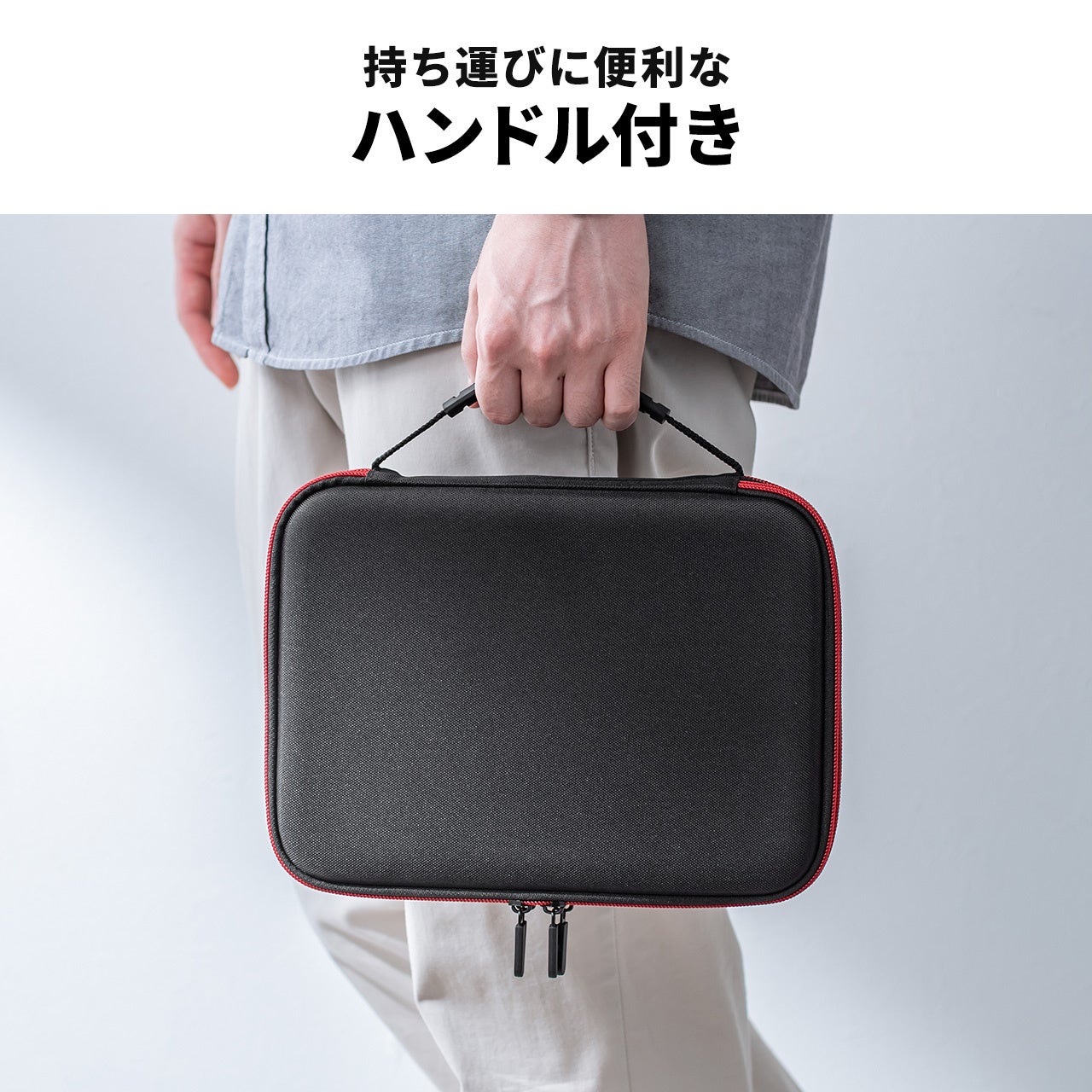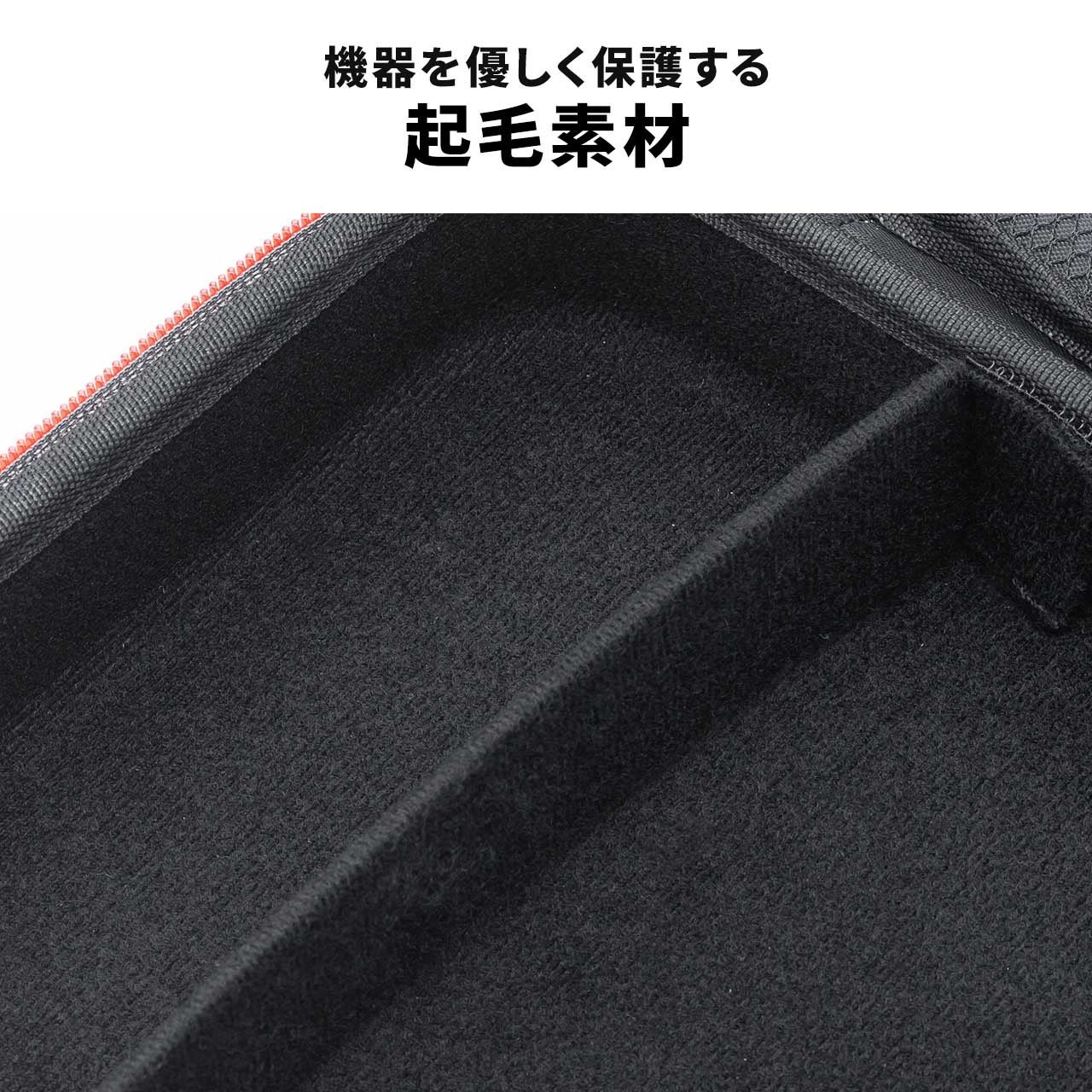 EVA素材を採用したセミハード仕様で、大切な周辺機器をしっかりガード。外出時のカバンの中でも衝撃や圧力から守り、安心して持ち運べます。さらに、ファスナー内側には収納物を傷つけないガード付きで、デリケートな機器を安心して収納できるのが特徴です。