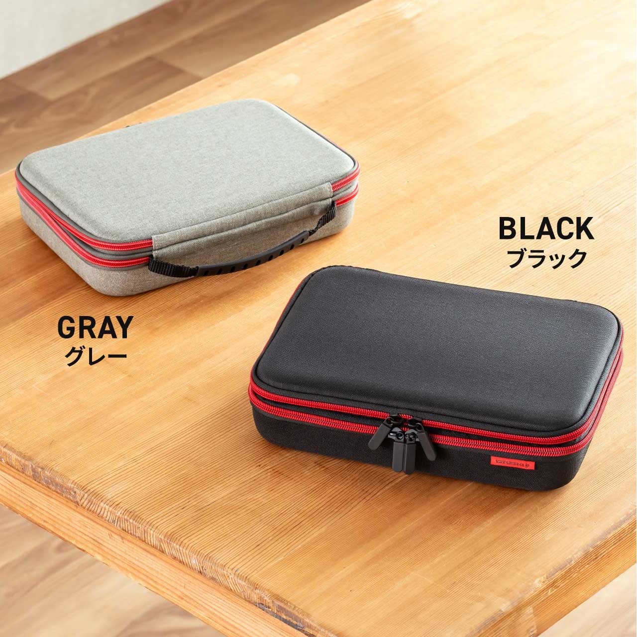 ダブルファスナーで大きく開き、中身が一目で確認できる設計。さらに、持ち運びに便利なハンドル付きで単体でも持ち歩きやすく、バッグインバッグとしても活躍します。シンプルなブラックとグレーの2色展開で、ビジネスからカジュアルまで違和感なくフィットします。