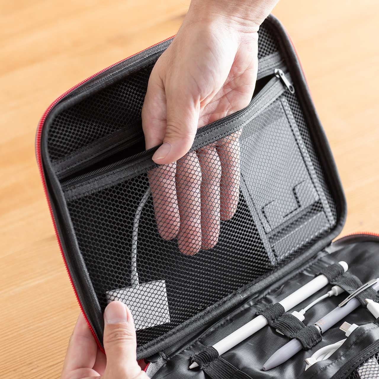 2層構造でスッキリ整理!衝撃から守るセミハードガジェットポーチ