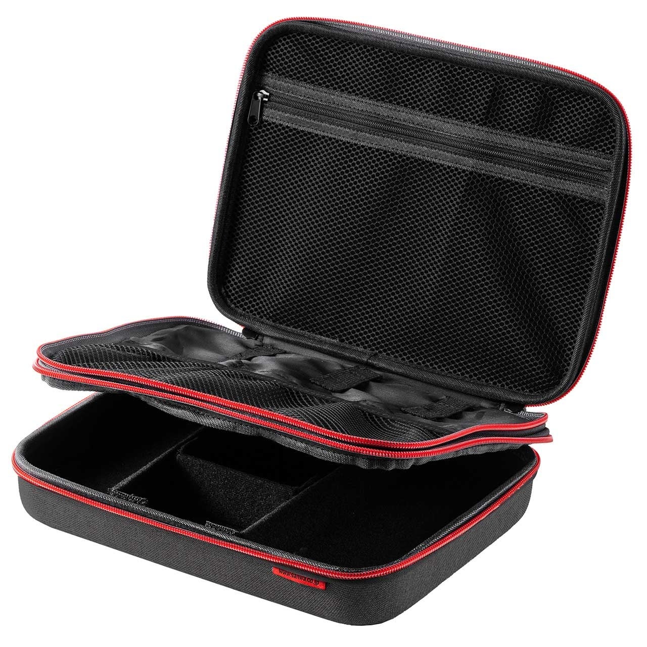 セミハードトラベルポーチ ダブルルーム・ガジェット収納ケース ダブルファスナー 出張 旅行 メッシュ ポケット ブラック/ホワイト