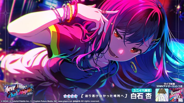 「Here comes challenger!ガチャ」からは、「3DMVアナザーカット」が解放可能な4人のユニットイベント限定となる新メンバーが出現いたします。新メンバーは同レアリティ内の他のメンバーよりも出現率が高くなっています。「3DMVアナザーカット」は、対象3DMV中に特別なソロカット映像を見ることができる新機能で、3DMVアナザーカット付きメンバーのマスターランクを2にすることで解放され、該当メンバーを編成して対象楽曲の3DMVを再生することで見ることができます。