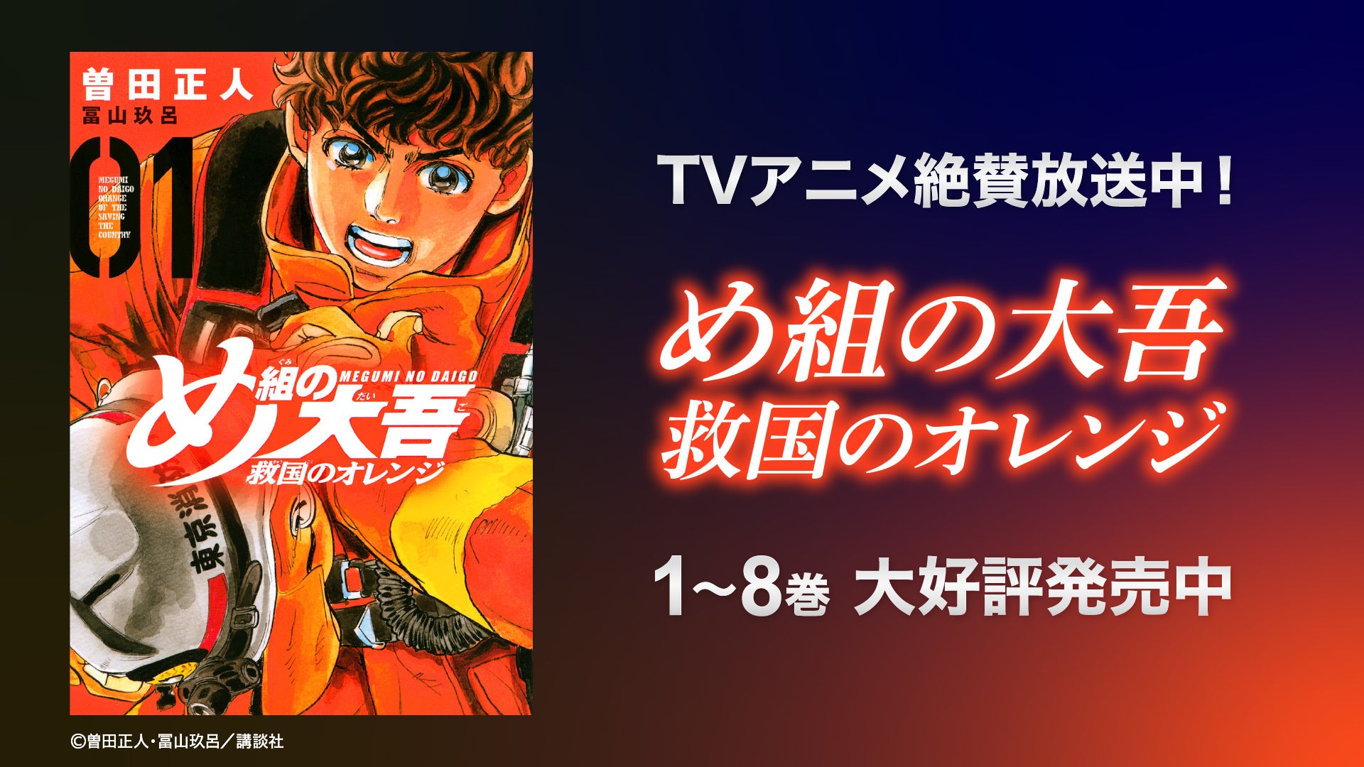 「シャカリキ!」「昴」「capeta」など、数々のヒット作を生み出した曽田正人先生の新作「め組の大吾 救国のオレンジ」最新第8巻が10月17日より大好評発売中!これを記念して、講談社が運営するYouTubeチャンネル「フル☆アニメTV」にて、TVアニメ「capeta」全52話を期間限定で一挙無料公開いたします。本日11月2日から12月2日までの期間限定配信となりますので、新作「め組の大吾 救国のオレンジ」と一緒にぜひお楽しみください!