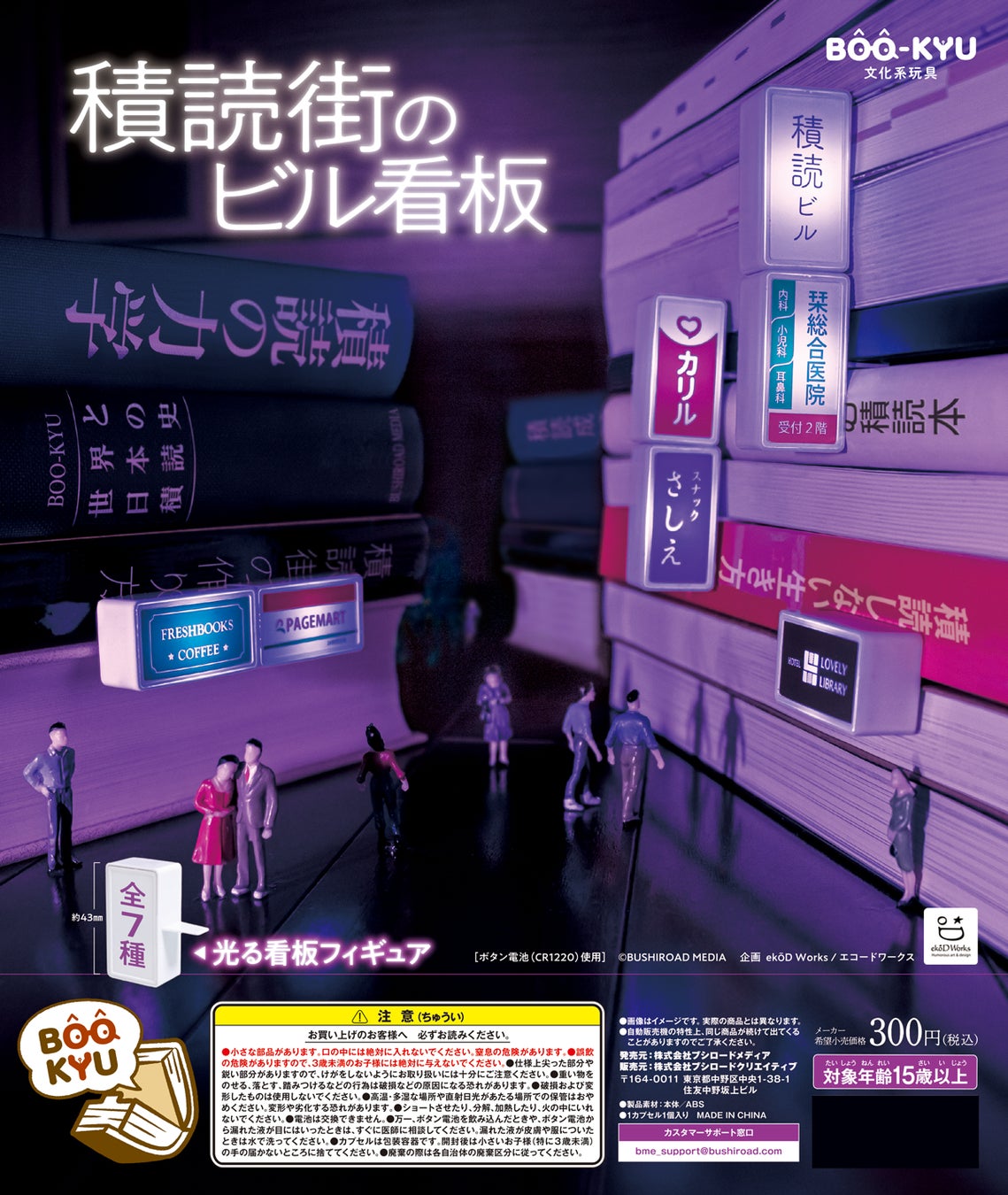 株式会社ブシロード(本社:東京都中野区、代表取締役社⻑:橋本義賢、以下ブシロード)のグループ会社にあたる株式会社ブシロードメディア(本社:東京都中野区、代表取締役社長:成田耕祐)は、文系カプセルトイブランド《BOO-KYU》より、第2弾として『積読街のビル看板』(企画ekōD Works/エコードワークス)を本日4月26日(火)より全国のカプセルトイ自動販売機にて販売を開始することをご案内致します。
