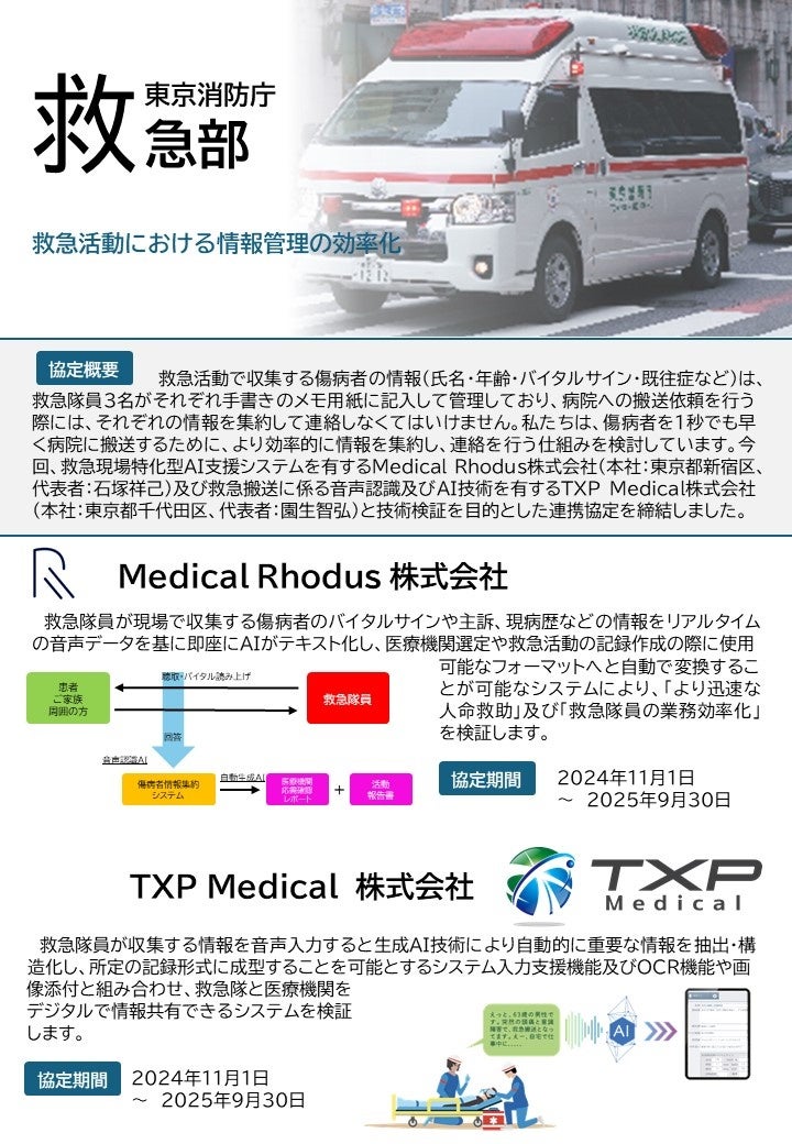 東京消防庁では、民間企業との協働により、当庁が抱える行政課題の解決に向け、DX