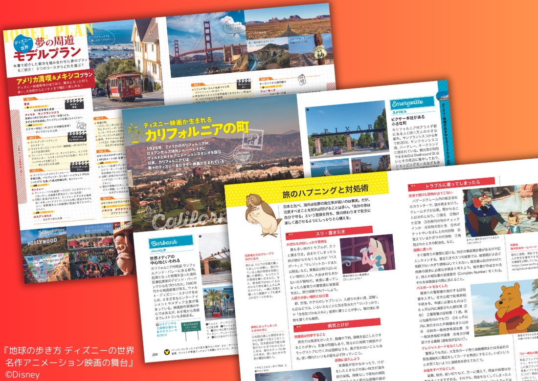 ディズニー作品の舞台を巡る編集部考案モデルプランや、「地球の歩き方」ならではの旅の技術もしっかりカバー