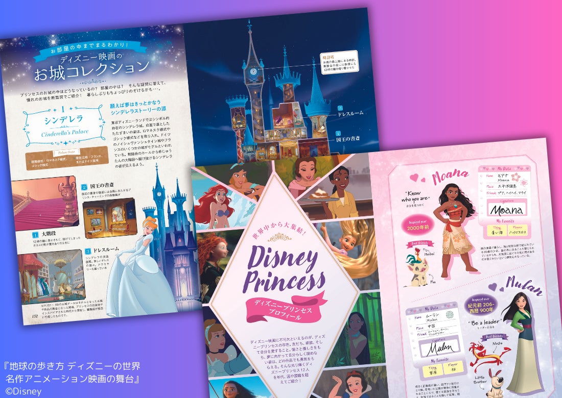ディズニー映画を美しく演出するお城の内部や、建築のポイントをビジュアルで解説。世界中にルーツをもつ、ディズニープリンセスのプロフィールも必読です。