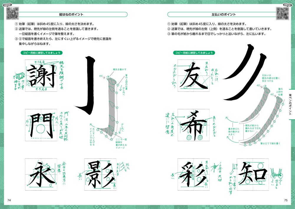 さらに、ポイントごとに分類し、視覚的な学習を強化するなぞり練習も取り入れられています。QRコードを活用して参考動画を視聴できるため、動画を使って学びたい人にも最適です。練習用紙はダウンロード可能で、何度でも利用できるので、自分のペースで練習したい人にも向いています。美文字を目指す方にとって、非常に有益な一冊となるでしょう。