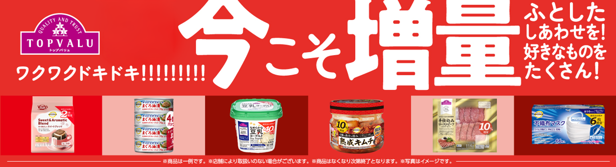 全国1万店舗でトップバリュ厳選84品目を期間限定増量