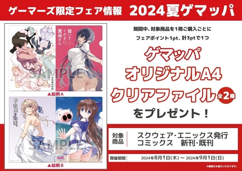 さらに、「2024夏コミッパ」開催を記念したゲーマーズ限定フェア「2024夏ゲマッパ」も同時開催! 対象商品をご購入いただくと、豪華特典をプレゼントいたします。