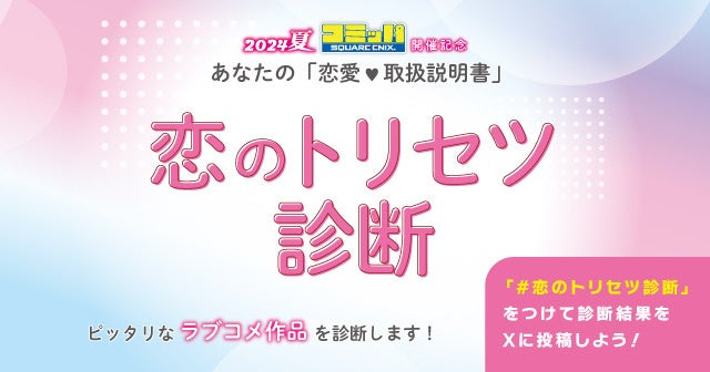 株式会社カードラボ ゲーマーズ(本社:東京都豊島区、https://www.gamers.co.jp/ 以下ゲーマーズ)は、2024年8月1日(木)10時より『2024夏コミッパ開催記念 あなたの「恋愛♥取扱説明書」恋のトリセツ診断』を開催することをお知らせいたします。