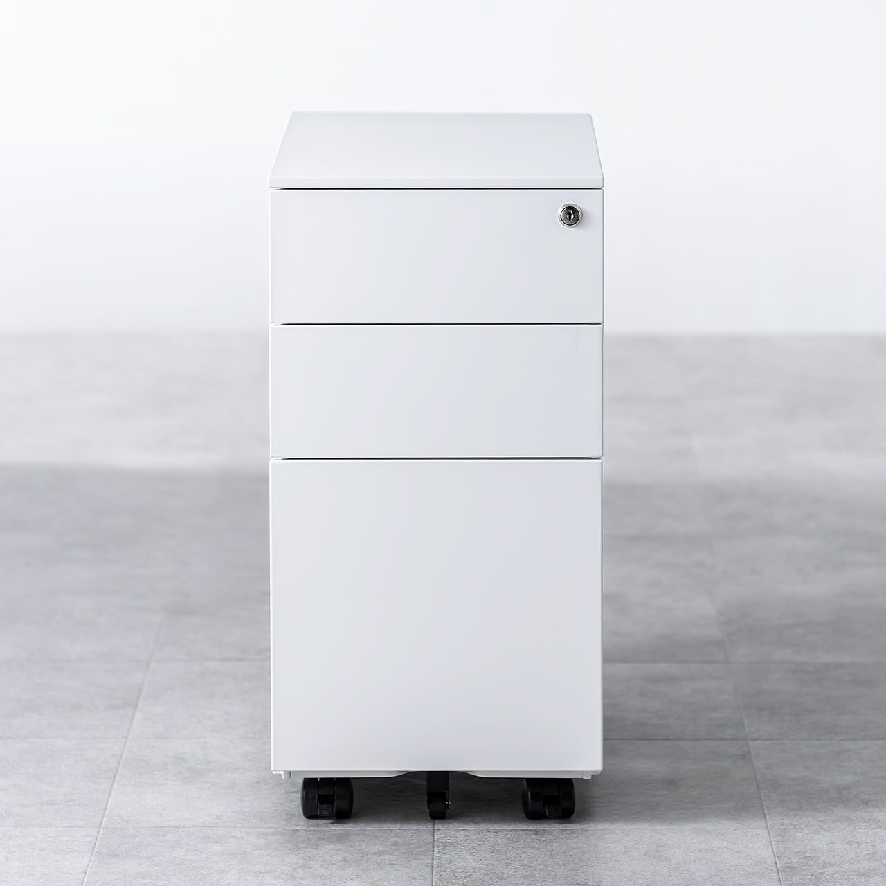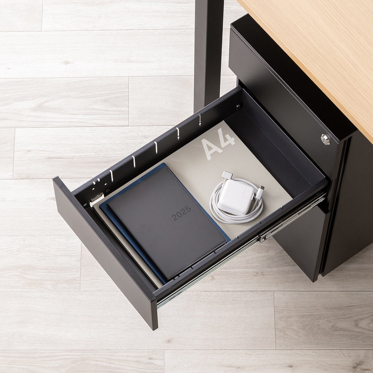 取っ手のないフラットな前面デザインは、無駄をそぎ落としたミニマルな美しさを実現。どんなデスクやインテリアにも自然に溶け込み、オフィスの雰囲気を邪魔せずスマートに演出します。マットな色味が、落ち着いた高級感をプラスします。