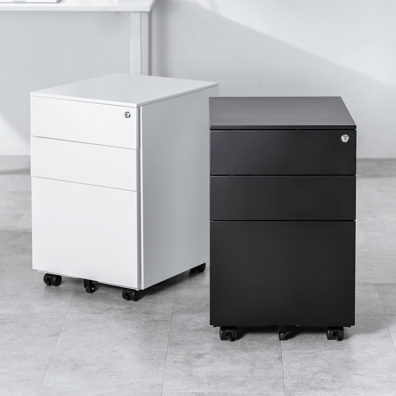 デスクワゴン キャビネット 3段 幅30cm 奥行き45cm 高さ60cm 鍵付き 一括ロック スチール ブラック/ホワイト