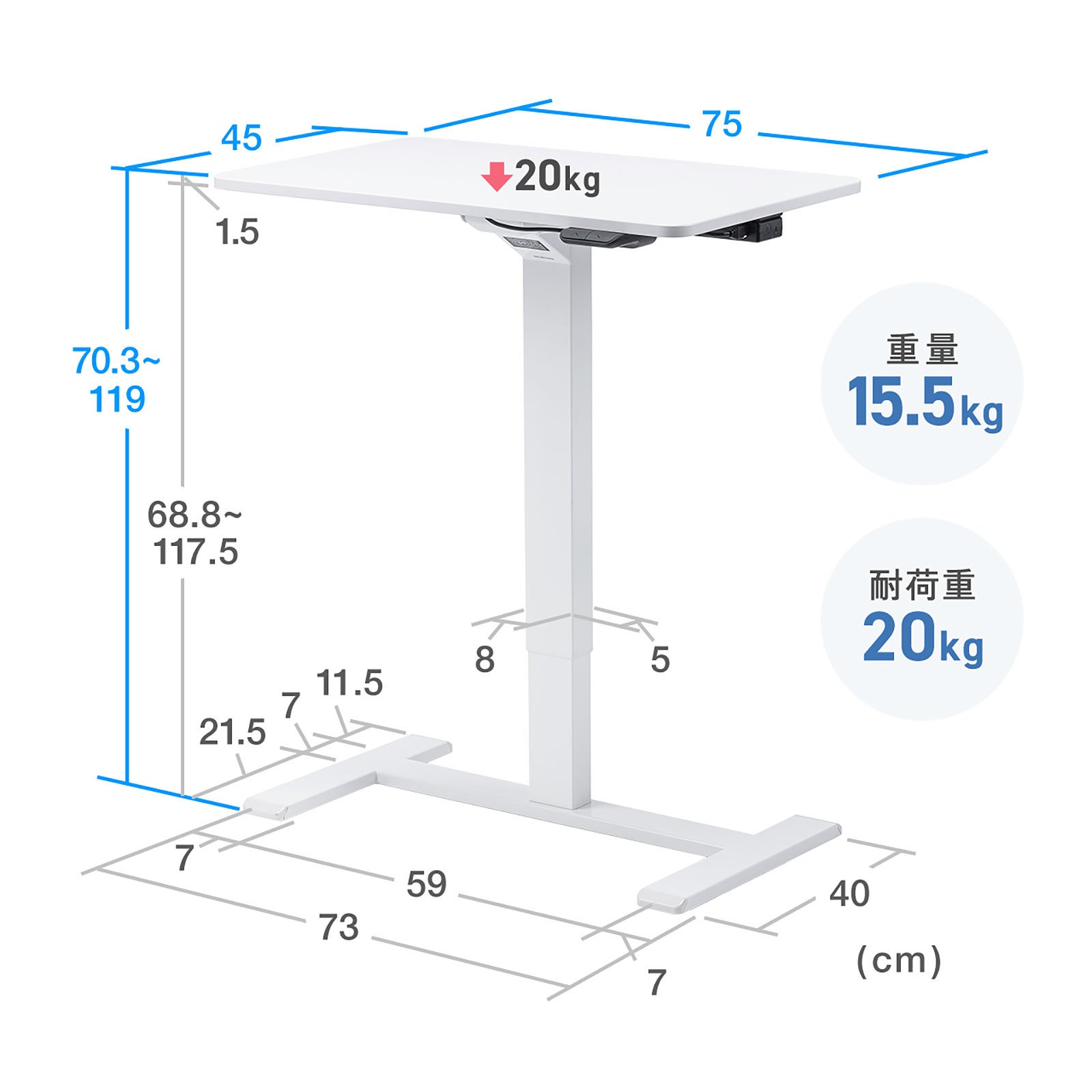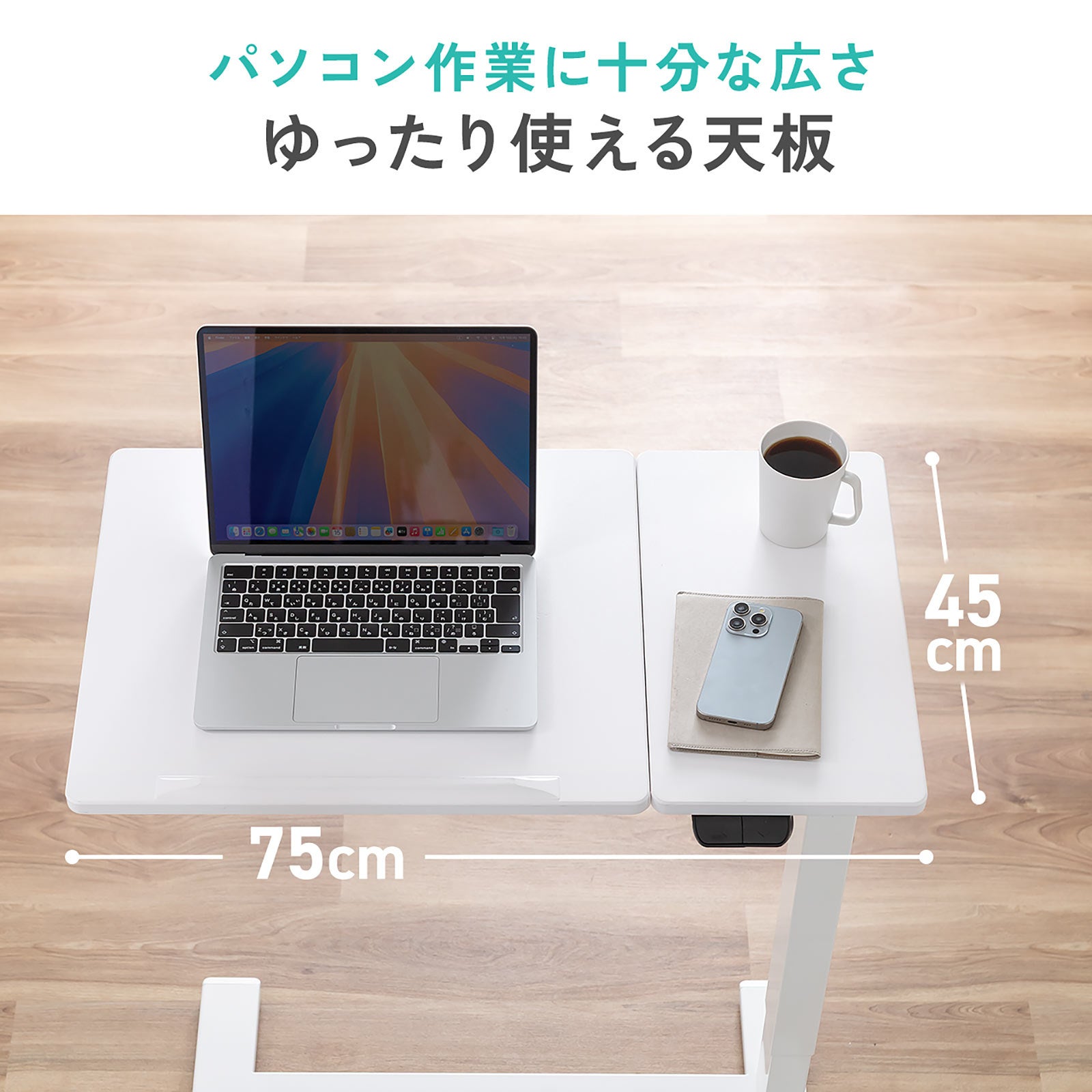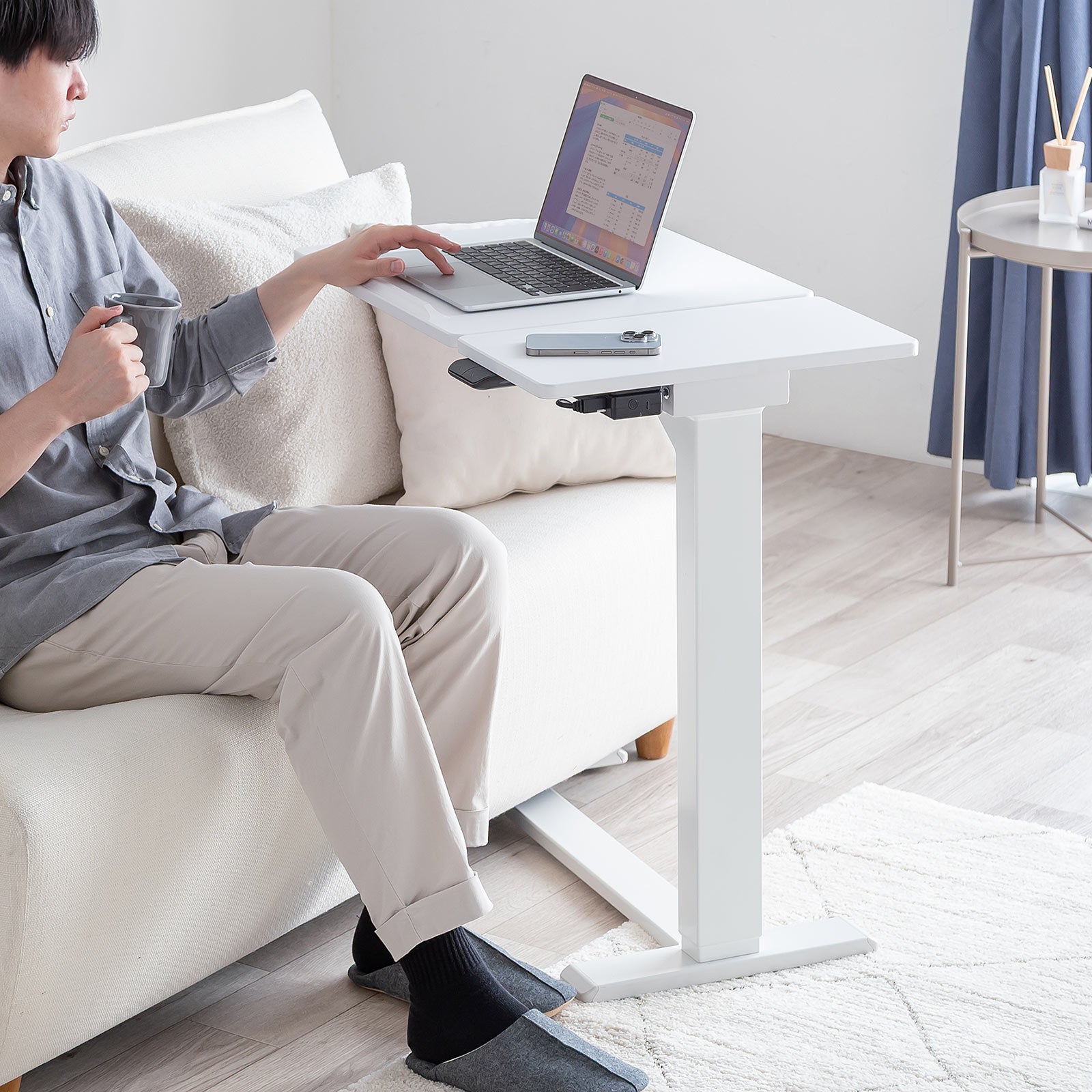 スタンディングデスク 電動昇降デスク ソファサイドテーブル 低床キャスター モバイルバッテリー稼働 軽量