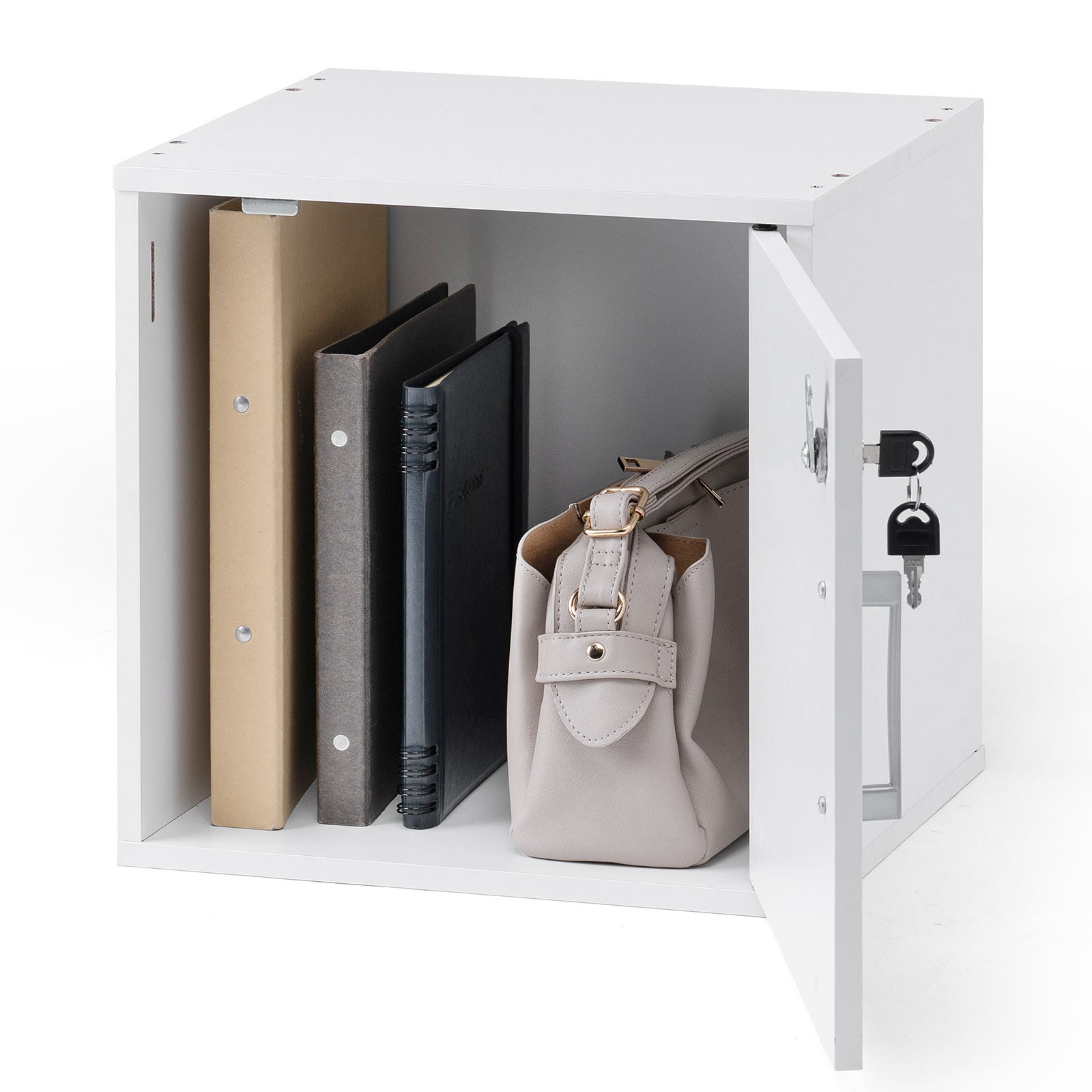 キューブボックス 小型 ロッカー セキュリティボックス 鍵付き 木製 スタッキング可能 簡単組立 A4 書類 貴重品 収納