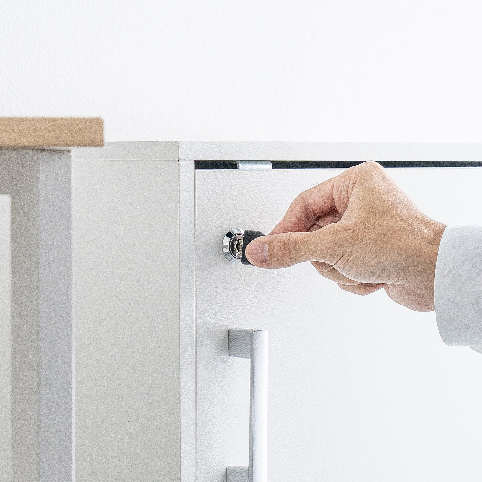 大切な書類や貴重品を収納する際に心配なのがセキュリティ。この木製キューブボックスには鍵が付属しており、プライバシーをしっかりと守ることができます。鍵は2本セットなので、使用者と管理者でそれぞれが鍵を所持することができます。