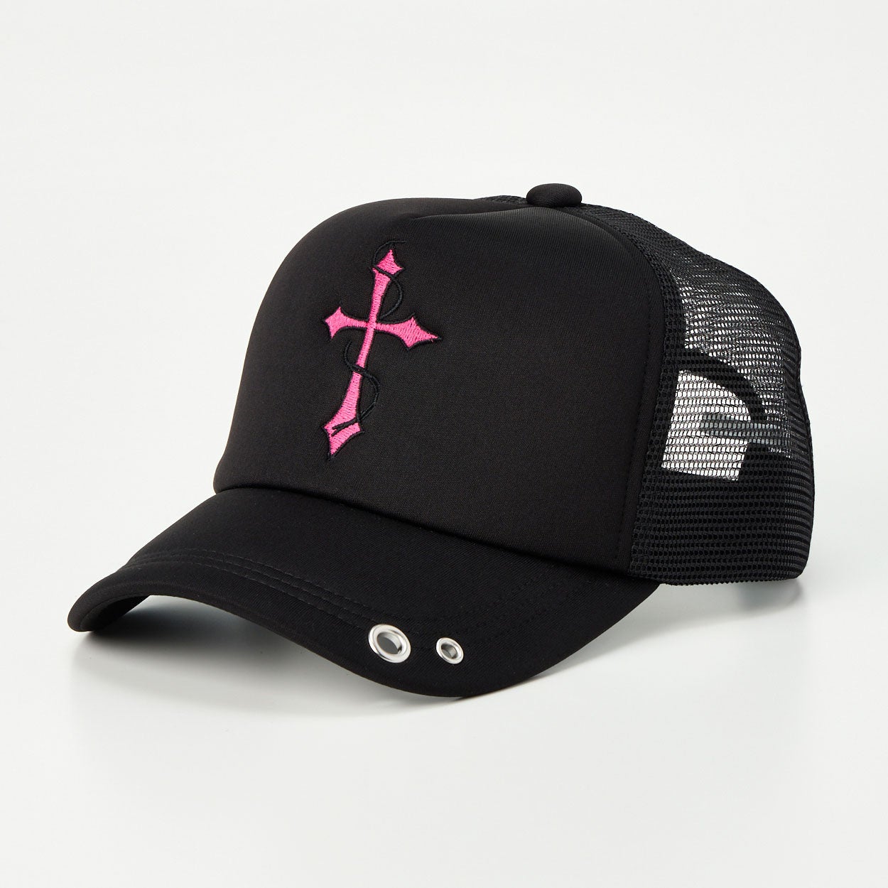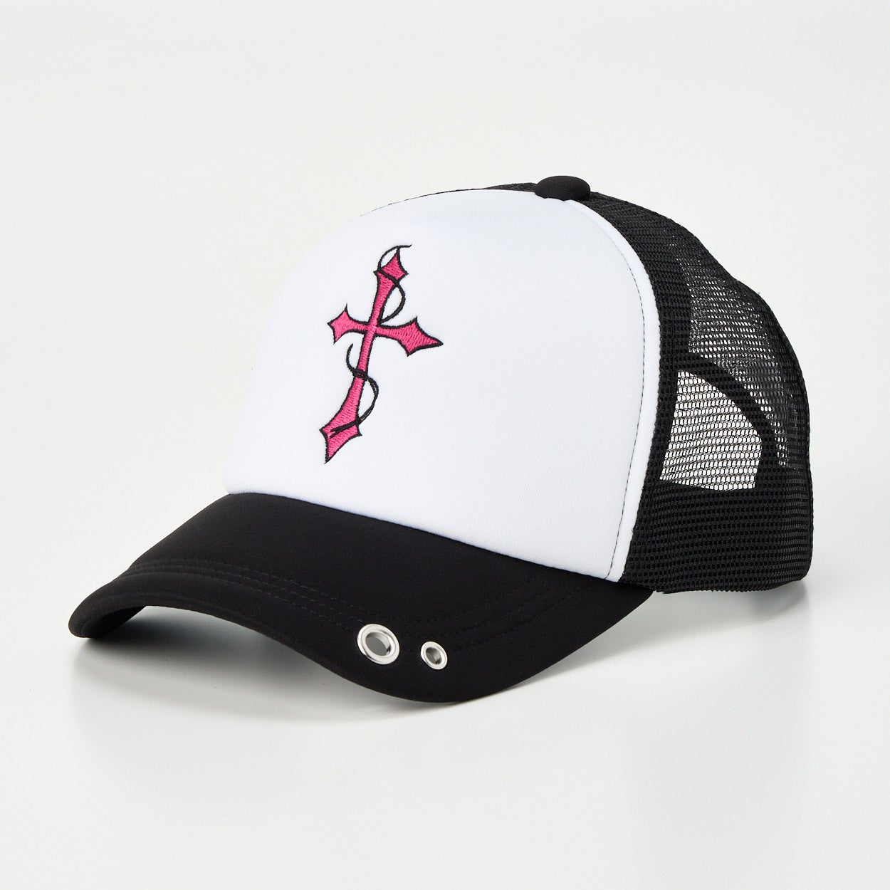 リュックはナップザックや巾着付き、収納スペースへの工夫など、学生のアイデアが詰まっています。メッシュキャップは“ファッションとして自分たちが被りたい”という切り口から、学生の意見を反映し、十字架刺繡・スタッズ・耳付き・羽刺繍の4パターンをデザインしました。どちらもアイデアを提案した学生たちが商品のモデルを務めています。