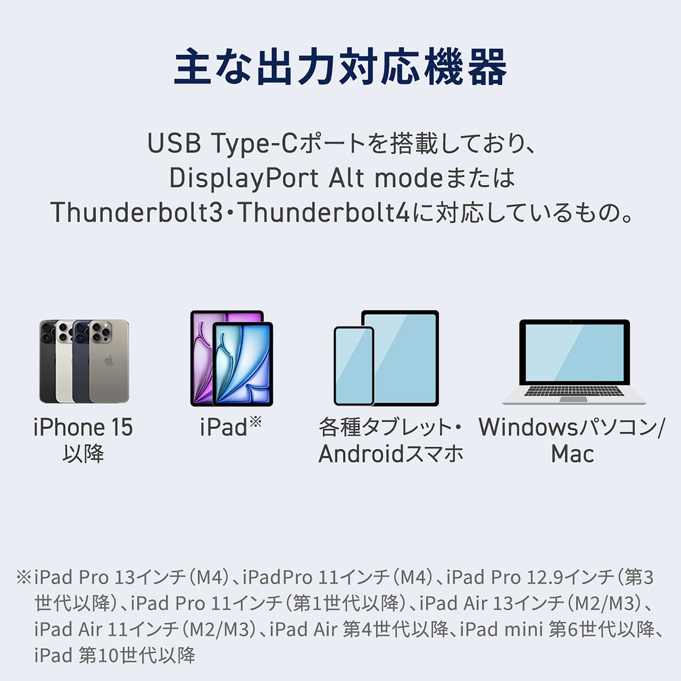 iPhone 15シリーズ、iPad、Androidタブレット、Windows PC、Macなど、さまざまな機器との互換性を備えています。家庭での動画視聴からビジネス現場まで、1本あればシーンを選ばず活躍する汎用性の高い変換ケーブルです。
