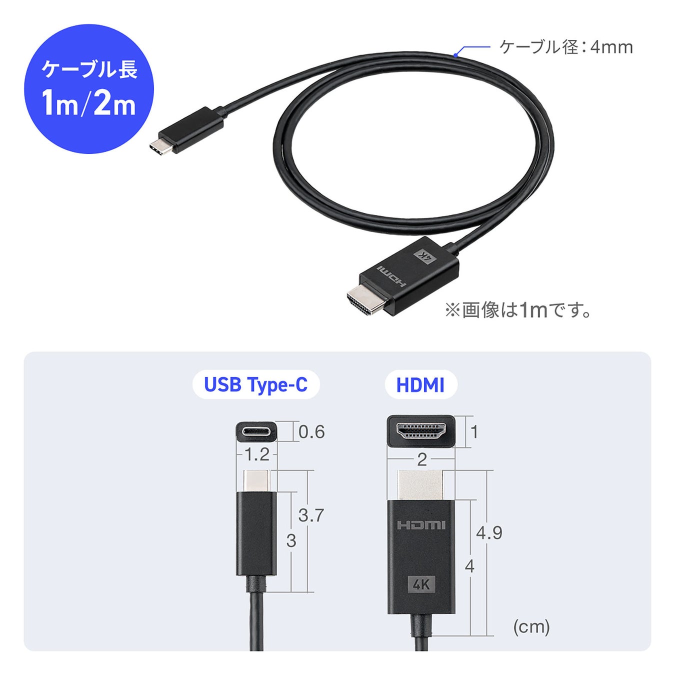 USB Type C HDMI 変換ケーブル 2m 4K60Hz USB C HDMI 変換 単方向通信 Thunderbolt 4/3 DPAltモード ブラック