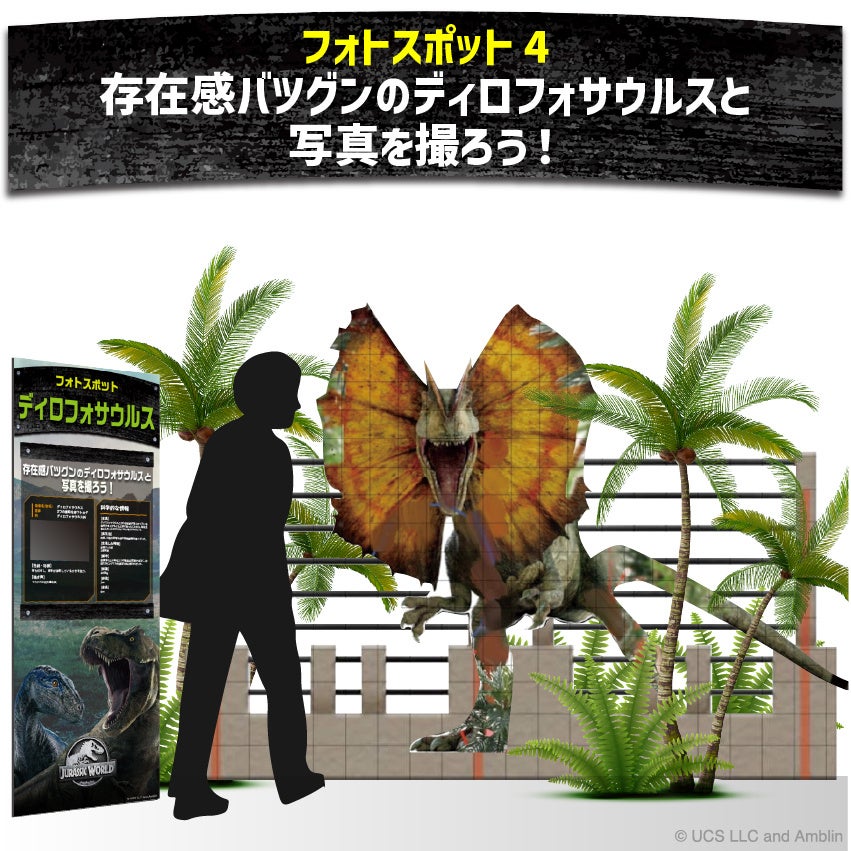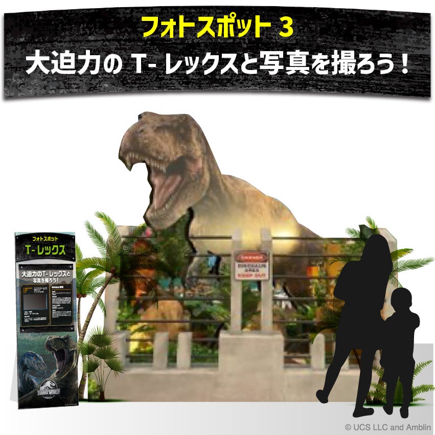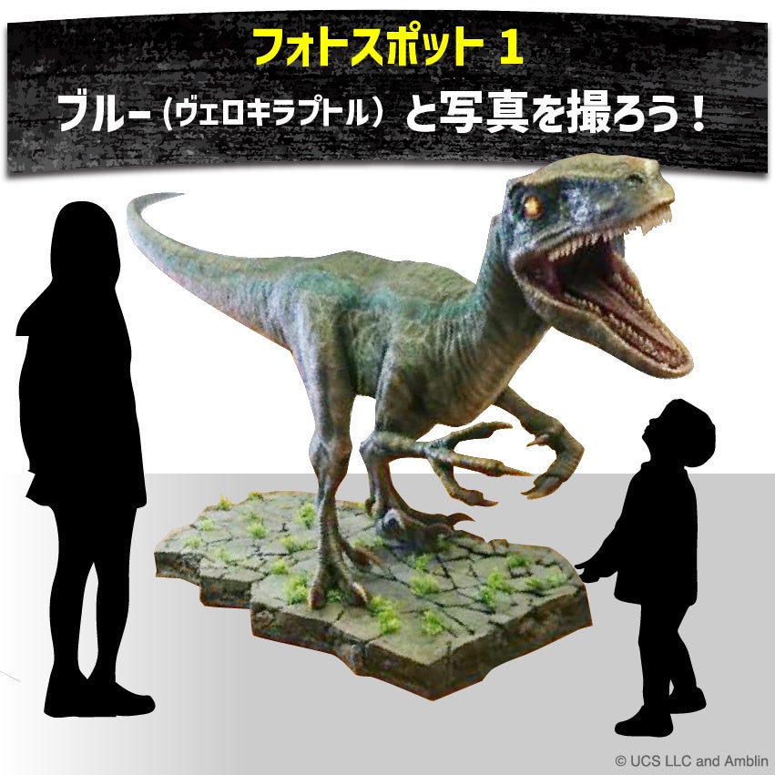 たくさんの「ジュラシック・ワールド」商品の販売に加えて、映画シリーズに登場する人気キャラクター「ブルー(ヴェロキラプトル)」の等身大スタチューや、大迫力のT-レックスと写真が撮られるフォトスポットも見どころ!