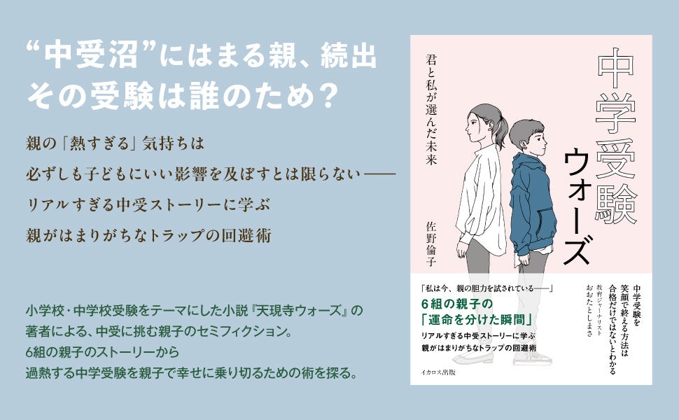 インプレスグループで航空分野などのメディア事業を手掛けるイカロス出版株式会社(本社:東京都千代田区、代表取締役社長:山手章弘)は、2023年11月24 日に『中学受験ウォーズ 君と私が選んだ未来』(佐野倫子著)を発売いたします。
