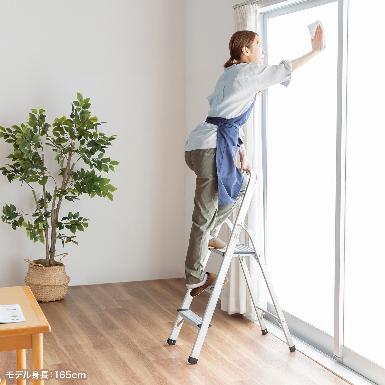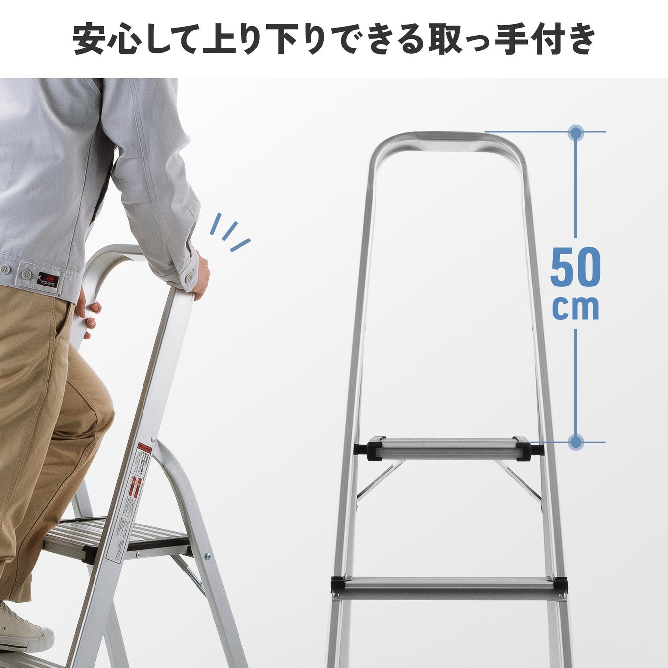 脚立上部には、上った際に握れる取っ手付きです。バランスを取りやすく、安定して作業が行えます。