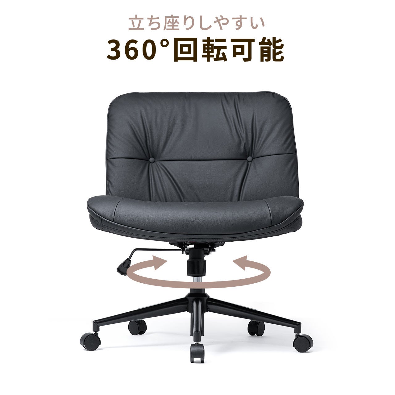 あぐら椅子 胡坐いす ワイドチェア ソファチェア 幅64cm 幅広座面 ロッキング キャスター ガス圧昇降 超ワイド設計 PUレザー