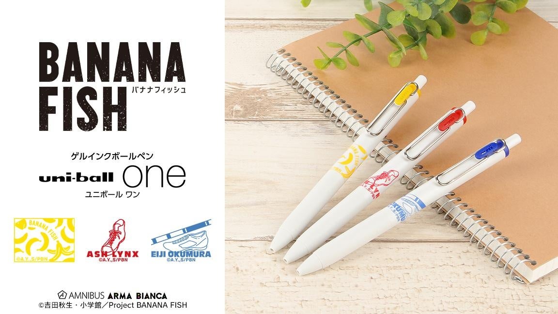 バナナのモチーフや、アッシュ・リンクスと奥村英二の靴をイメージしたモチーフを散りばめ、ゲルインクボールペンに仕上げました。
