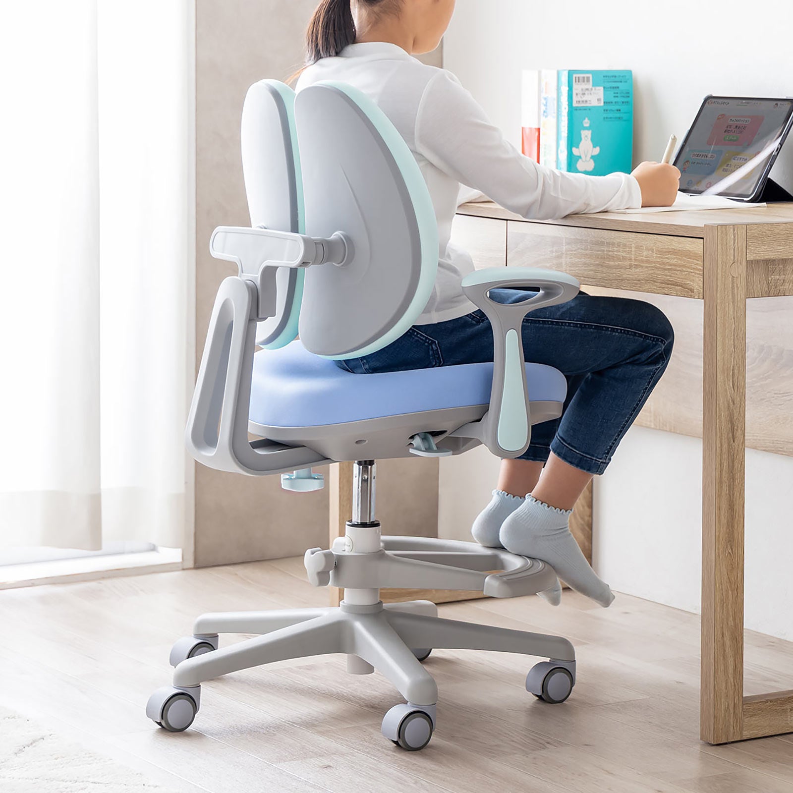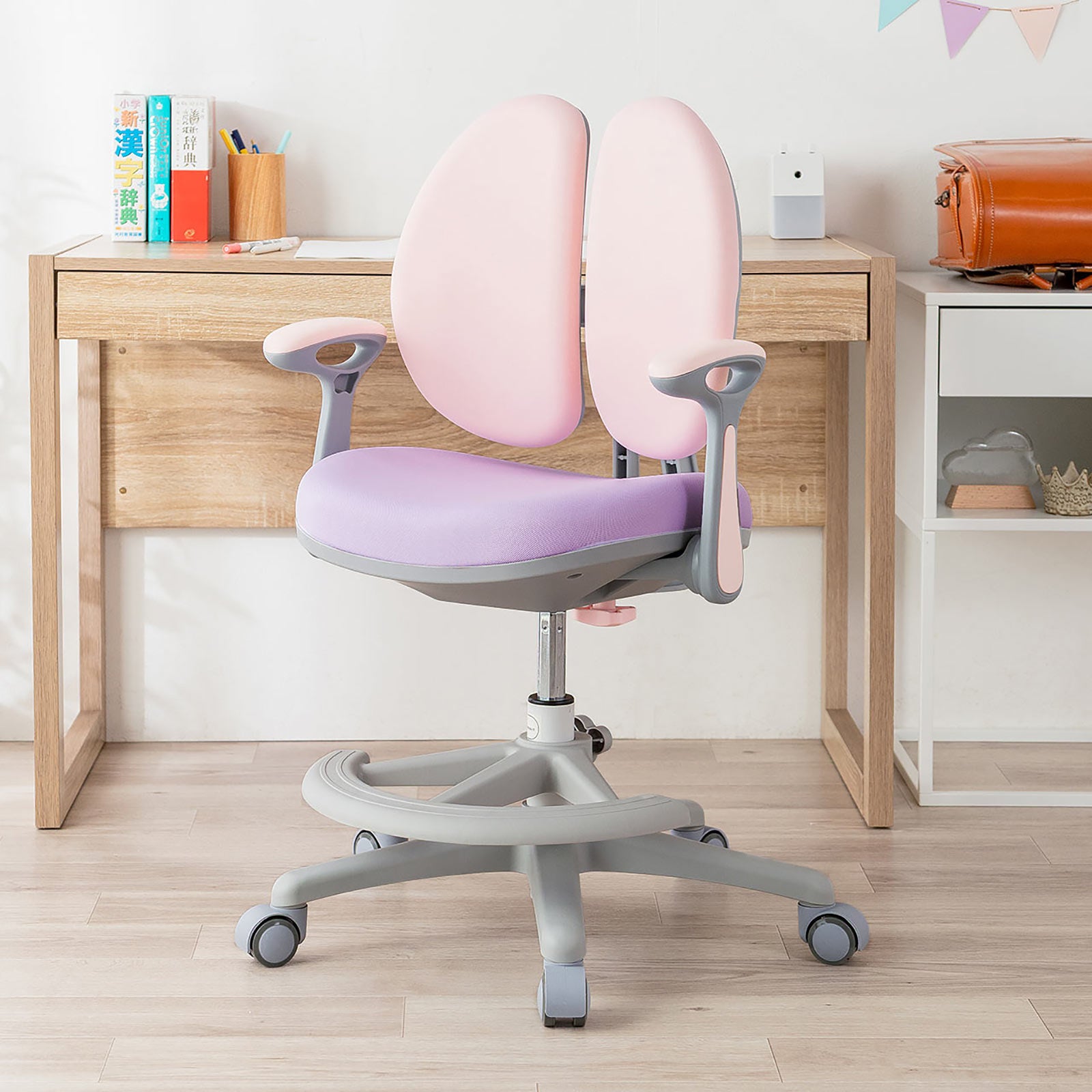左右分割された背もたれが体の動きに合わせてフィットし、正しい姿勢を自然に保ちます。学習時の猫背や前傾姿勢を防ぐことで集中力が高まり、長時間の学習や作業でも疲れにくくなります。健康的な姿勢習慣を身につけるサポートチェアです。