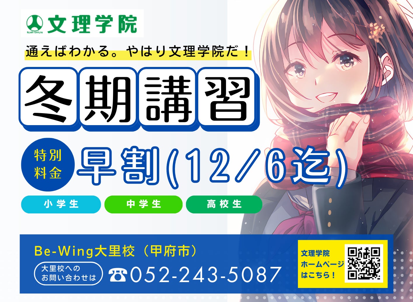 【甲府市】文理学院(Be-Wing大里校)では、冬期講習生(早割11/8~12/6)を募集しています