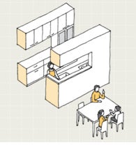 そういう意味では、「食べる」行為をおこなうダイニングテーブルと「料理を作る、片づける」行為をするキッチンの距離が大切になります。