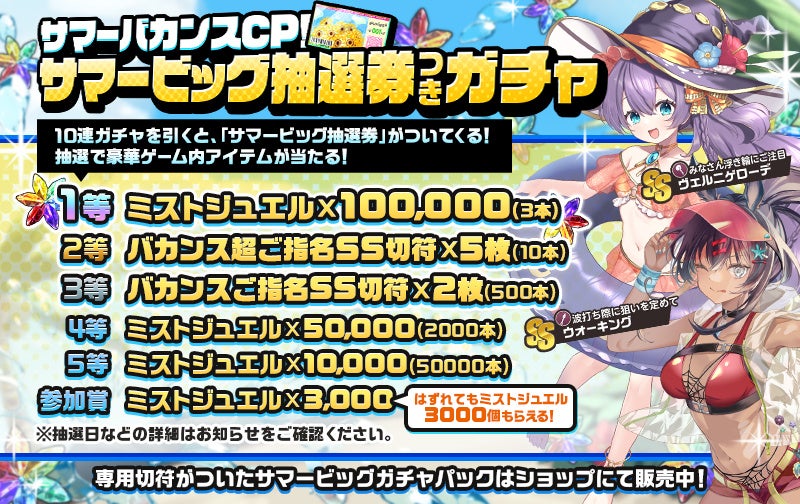 ▼最大10万ジュエルが当たる!!!サマービッグ抽選券つきガチャ