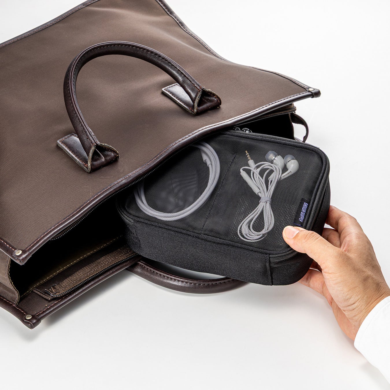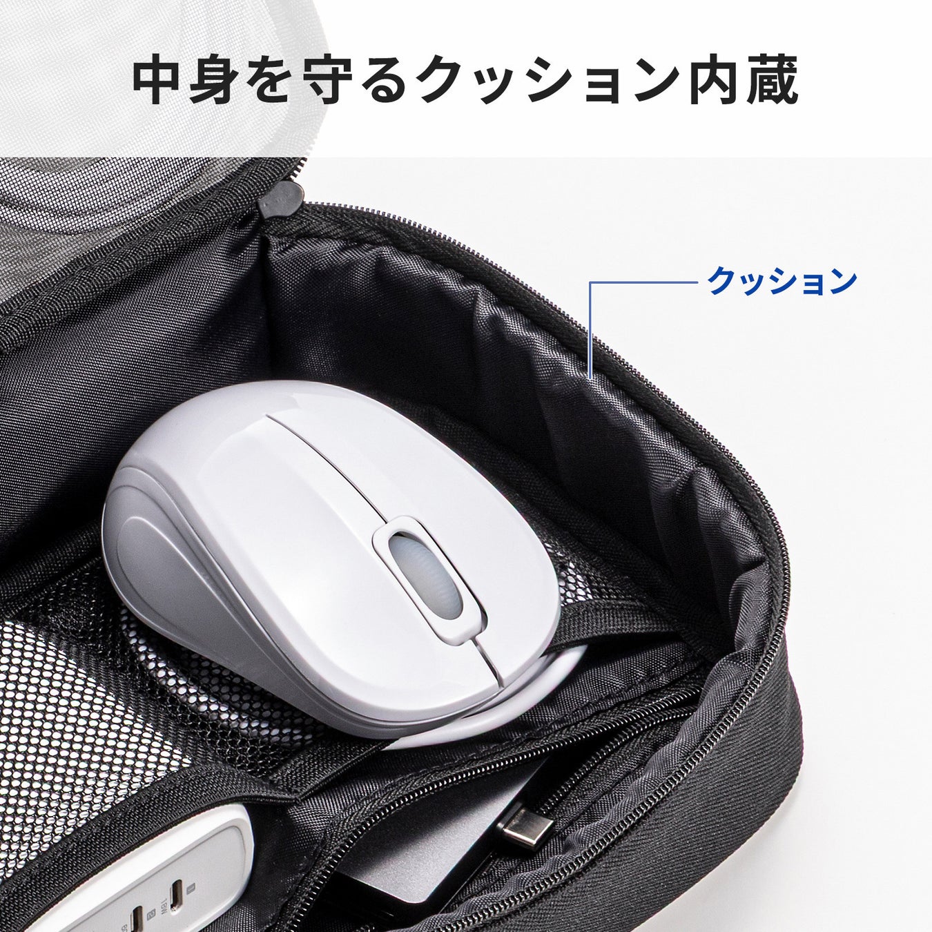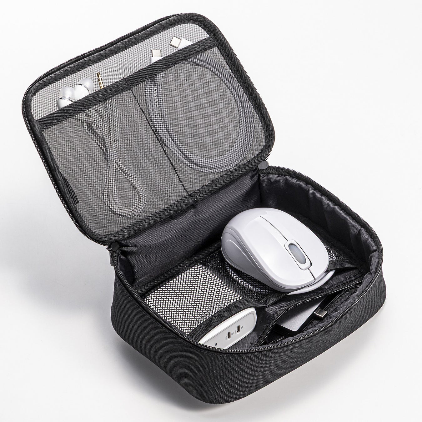 2つのサイズをラインアップし、モバイルバッテリーや充電器、ケーブルなどの小物をスマートに整理・収納できます。