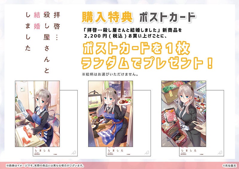 ※AKIHABARAゲーマーズ本店にて開催の『拝啓…殺し屋さんと結婚しました』POP UPコーナー購入特典「ポストカード(全3種)」と同一となります。