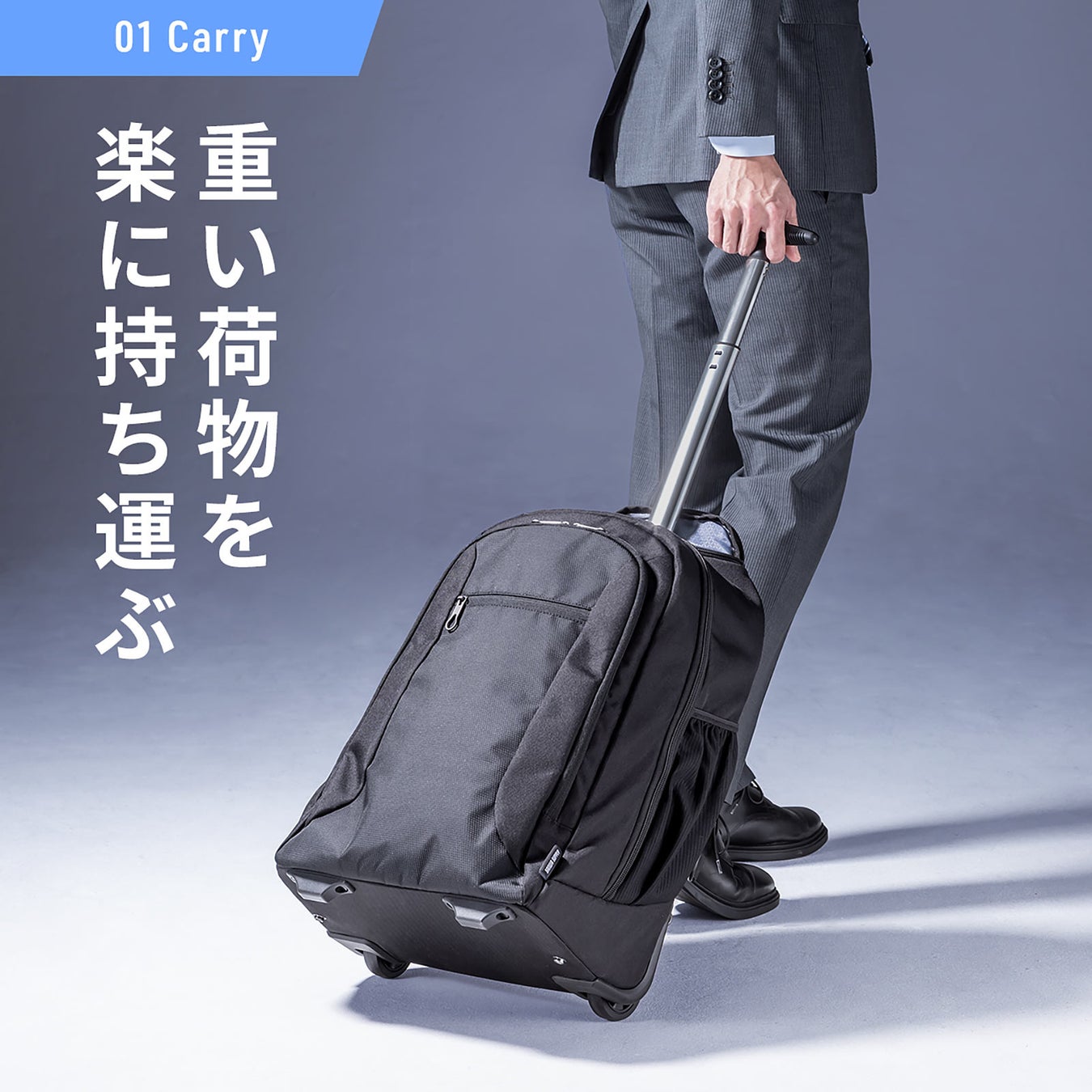 混雑した駅や階段ではリュックに、重い荷物の移動にはキャリーに。シーンに応じて瞬時に切り替えられる2WAY仕様で、ストレスのない移動を実現します。両手が空くことで快適さが格段にアップし、ビジネスから旅行までマルチに対応します。