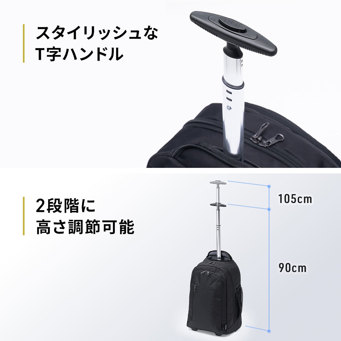サンワサプライ株式会社(本社:岡山市北区田町1-10-1、 代表取締役社長 山田 和範)が運営している直販サイト『サンワダイレクト』では、キャリー&リュックの2WAY仕様でシーンに応じて使いわけできる、1本軸のT字キャリーバーを搭載したスマートなキャリーリュック「200-BAGCR015BK」を発売しました。