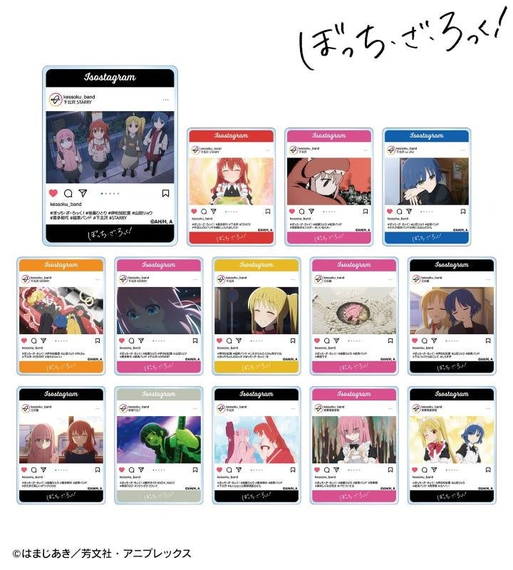 後藤ひとり、伊地知虹夏、山田リョウ、喜多郁代、伊地知星歌、廣井きくりの場面写を、作中に登場するイソスタグラム風のデザインに仕上げました。